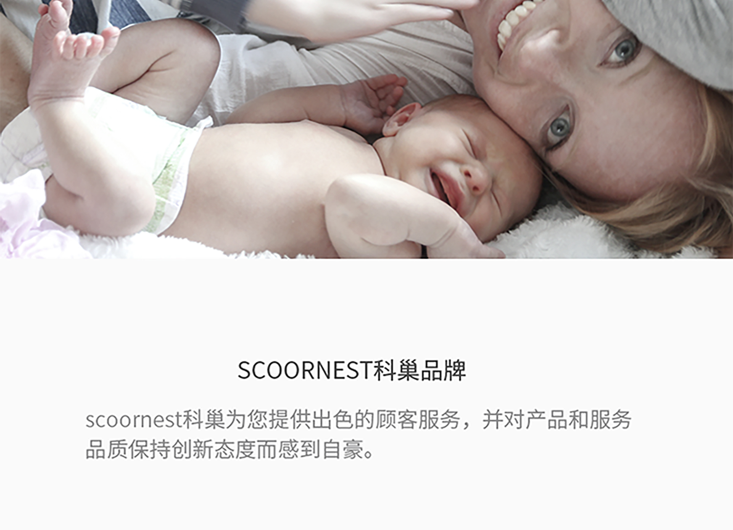- Scoornest始终秉承给每一位宝宝送去科学的、关心的、创新的成长体验,通过提供商品和服务,使顾客形成守护、发展、巩固这种弥足珍贵的亲情的爱。