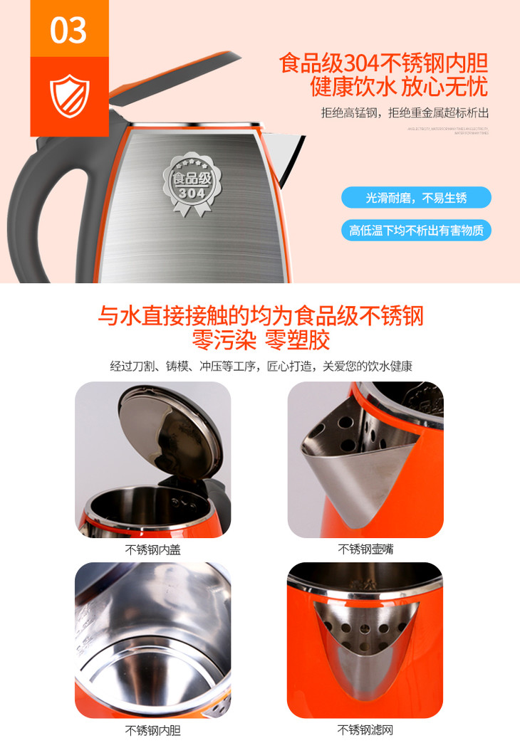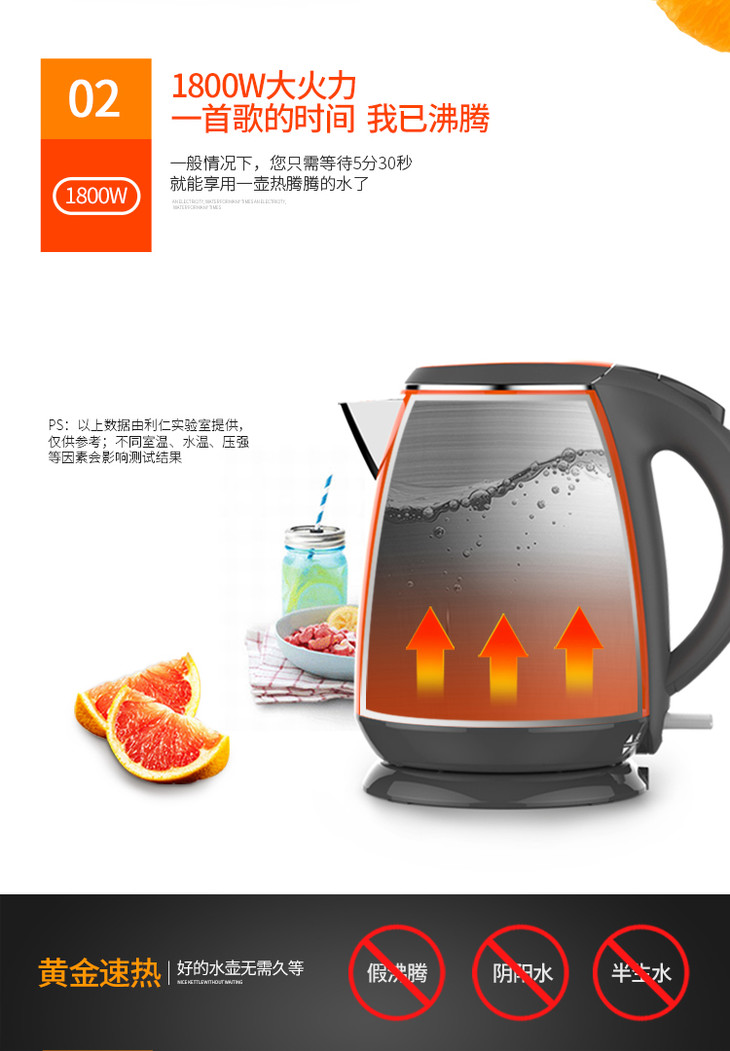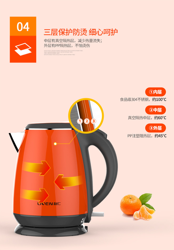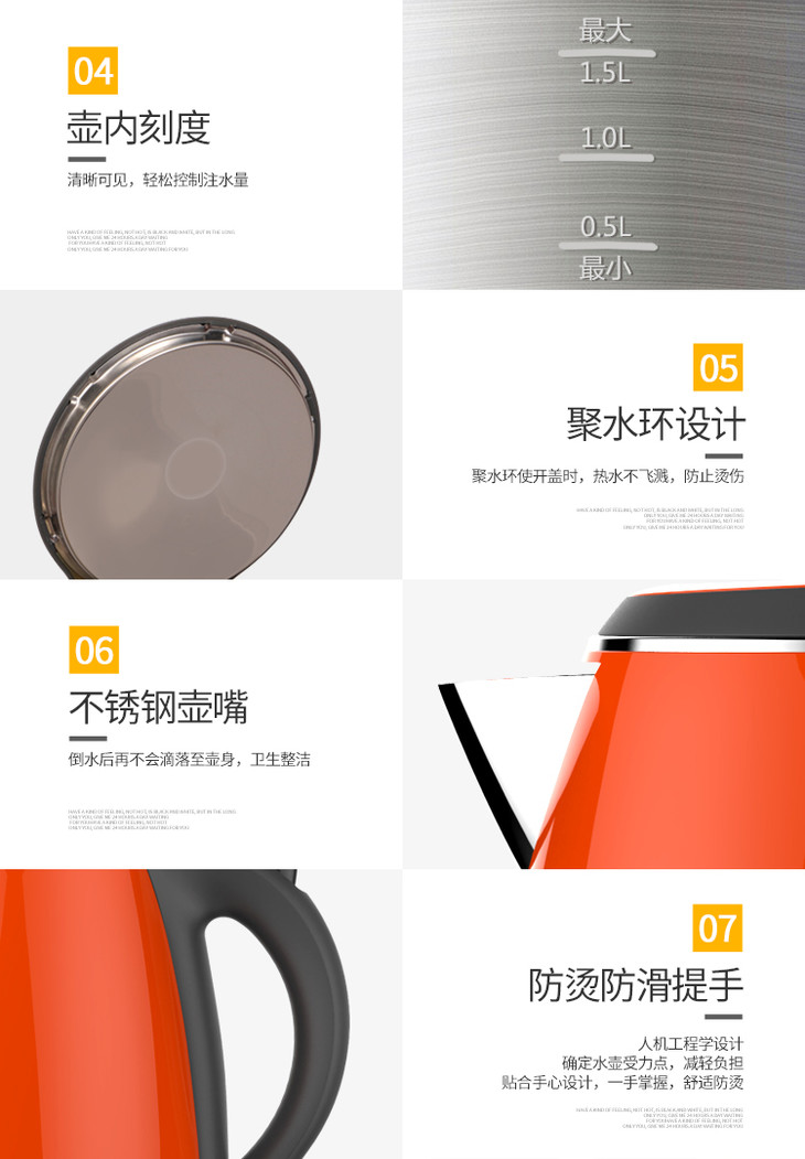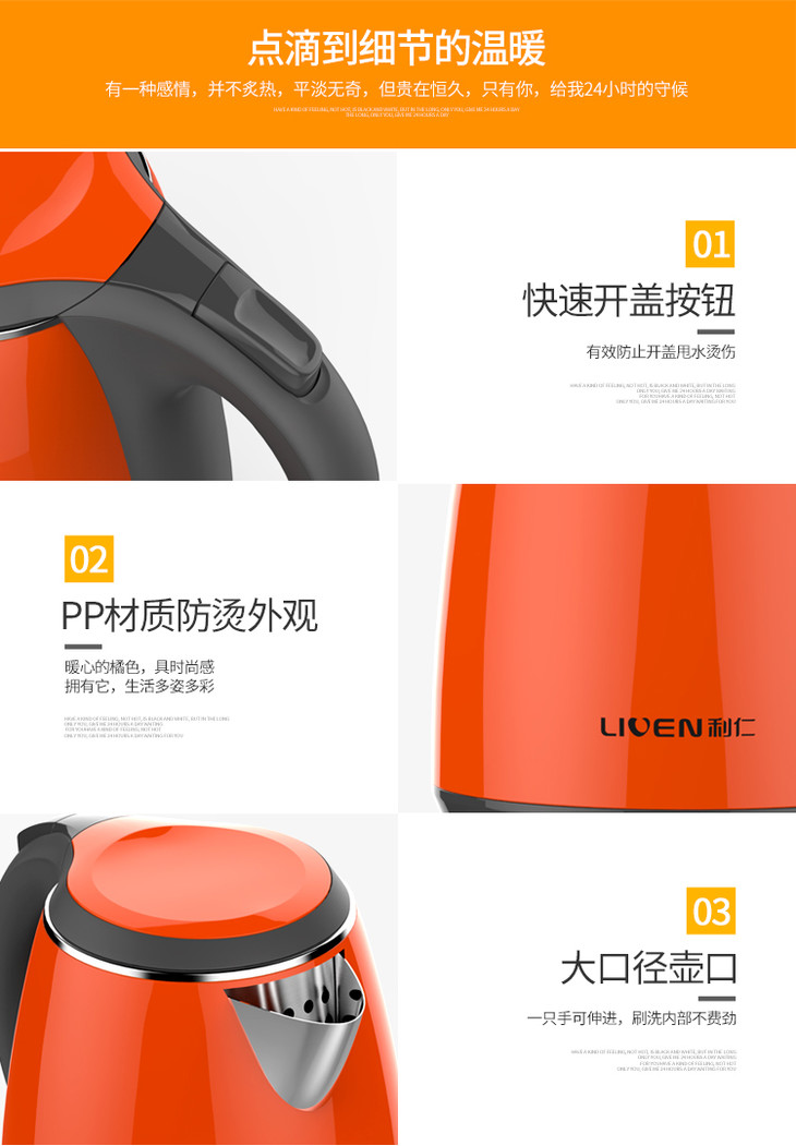 利仁(Liven)电水壶304不锈钢电热水壶1.5L烧水壶双层防烫防干烧 1.5L+防烫+电水壶SH-S1503