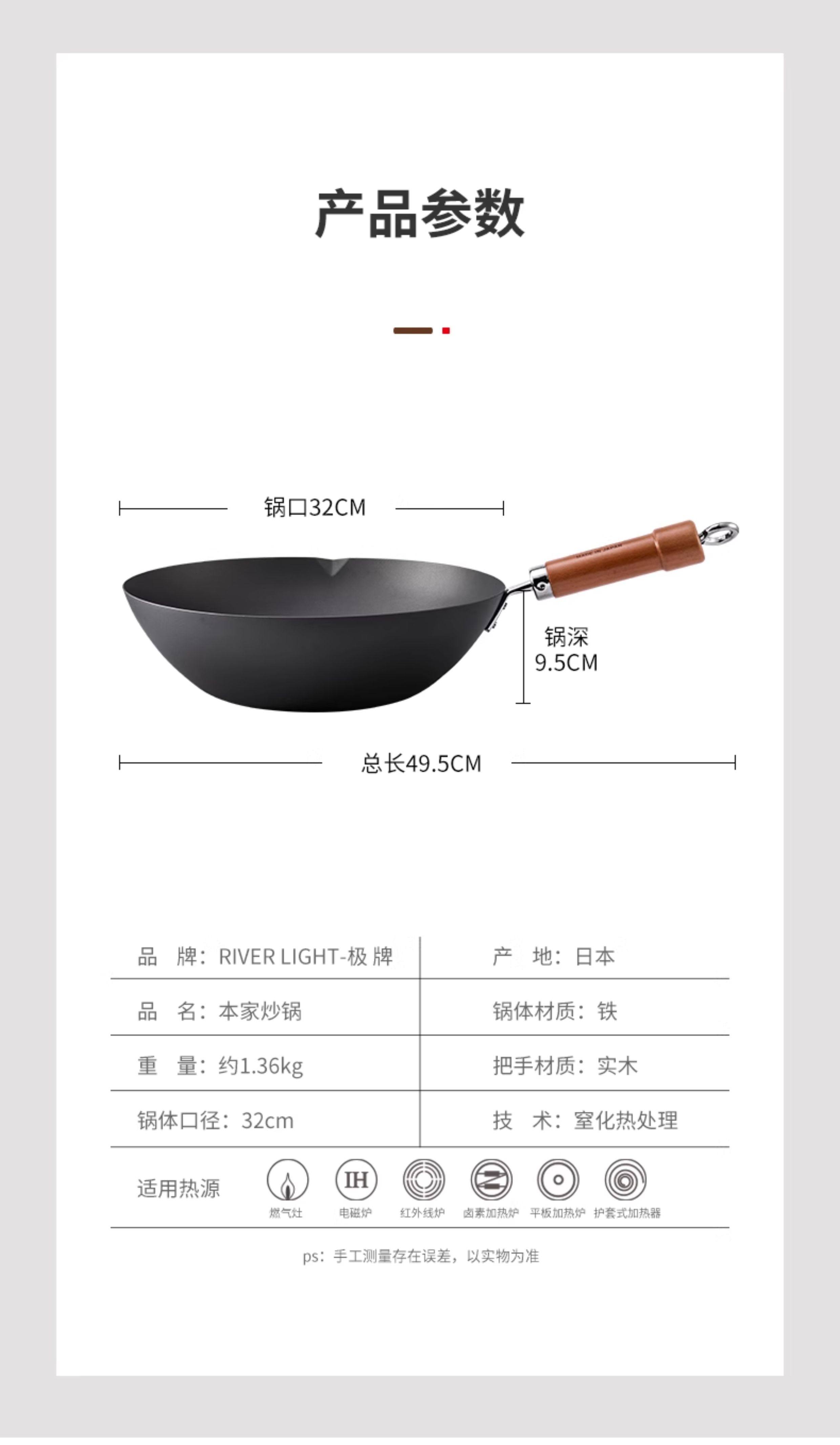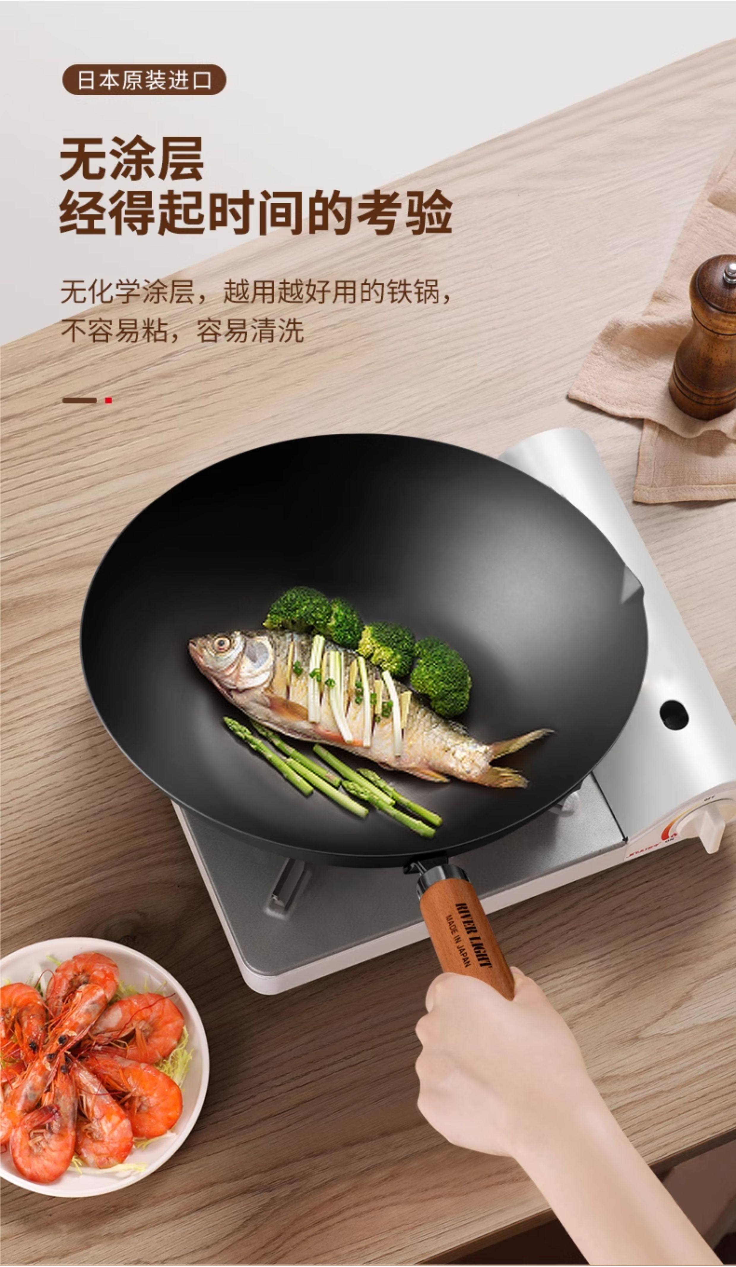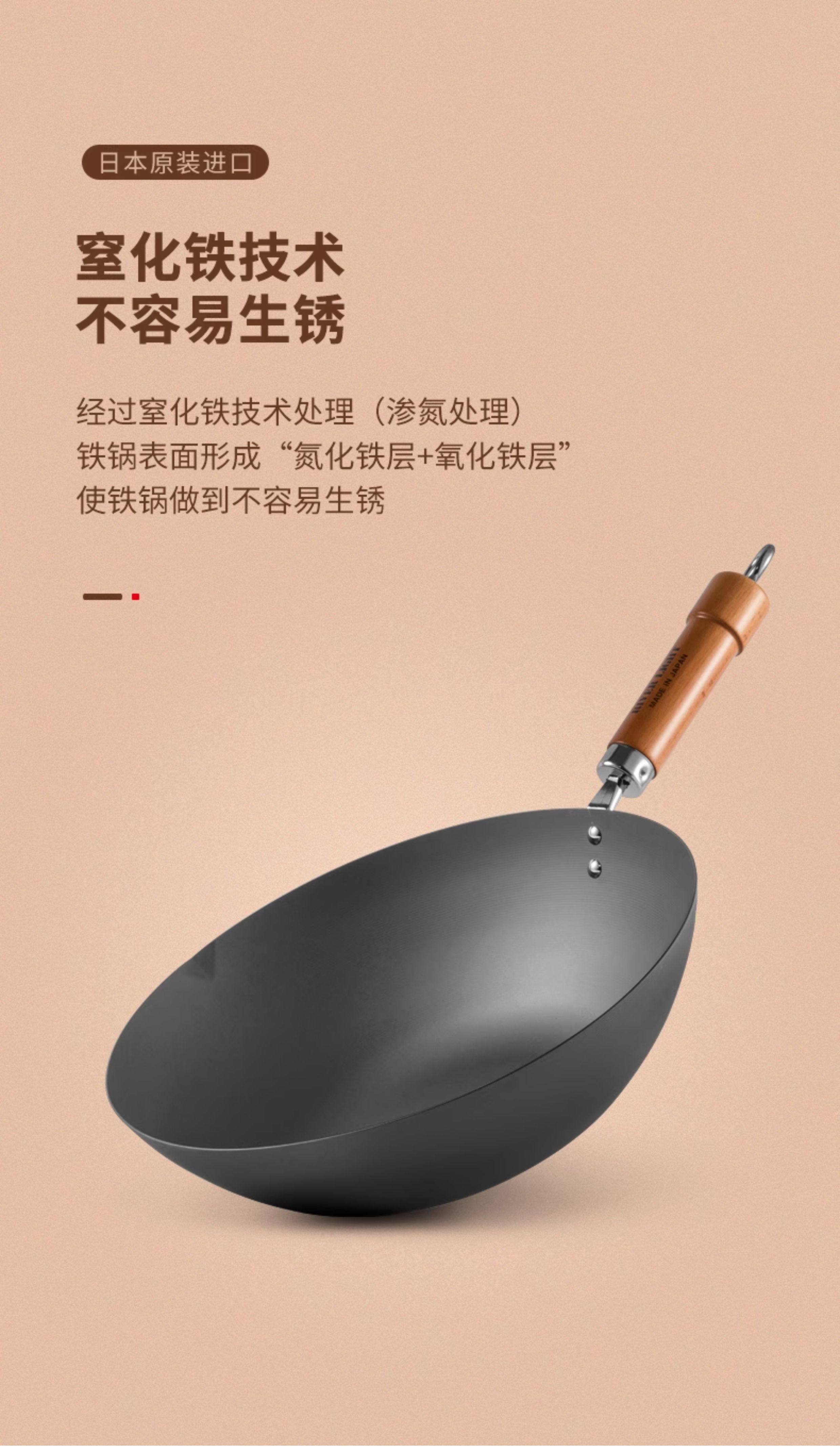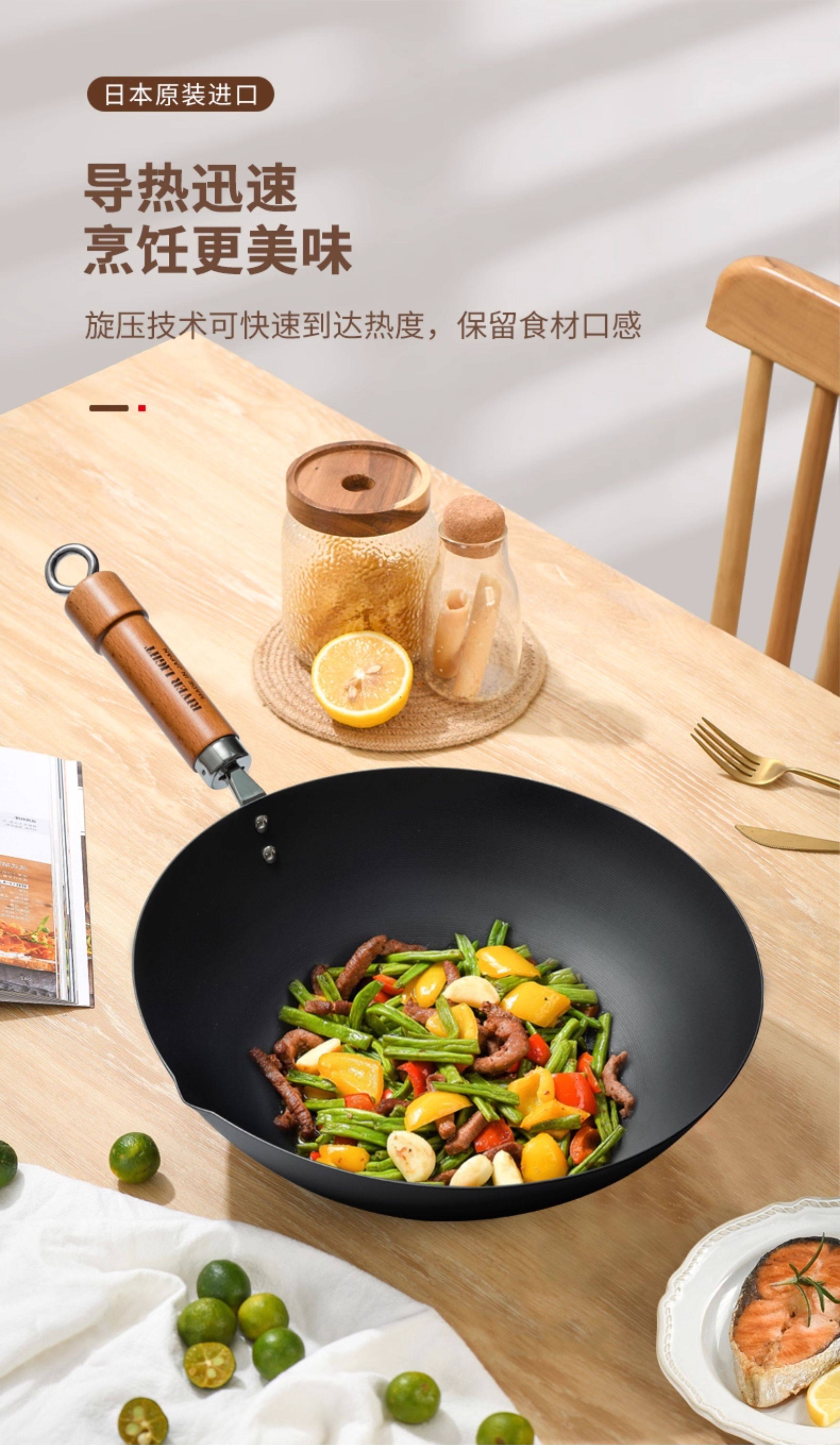 日本极牌进口无涂层炒锅本家铁锅32cm(含锅盖)