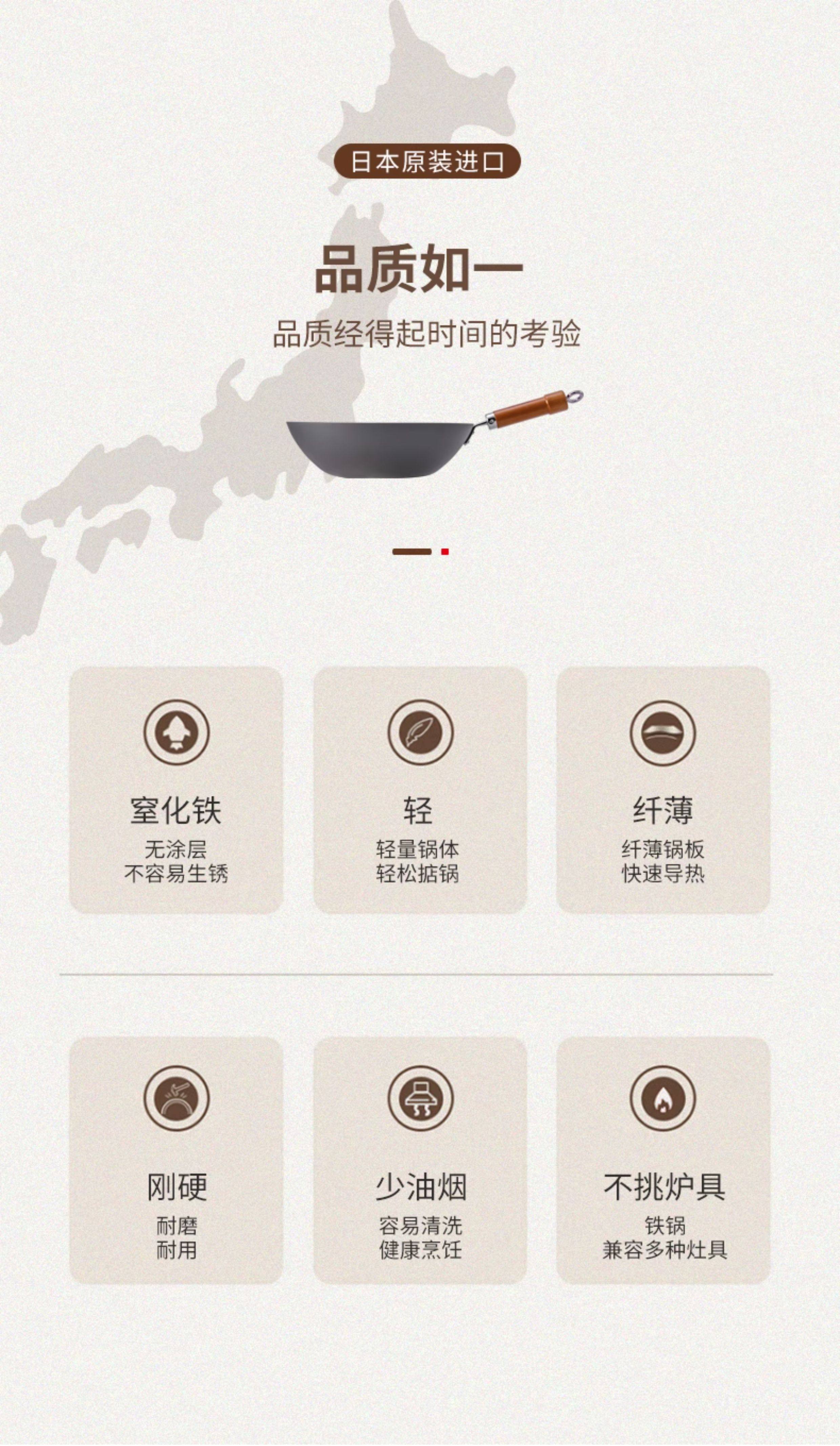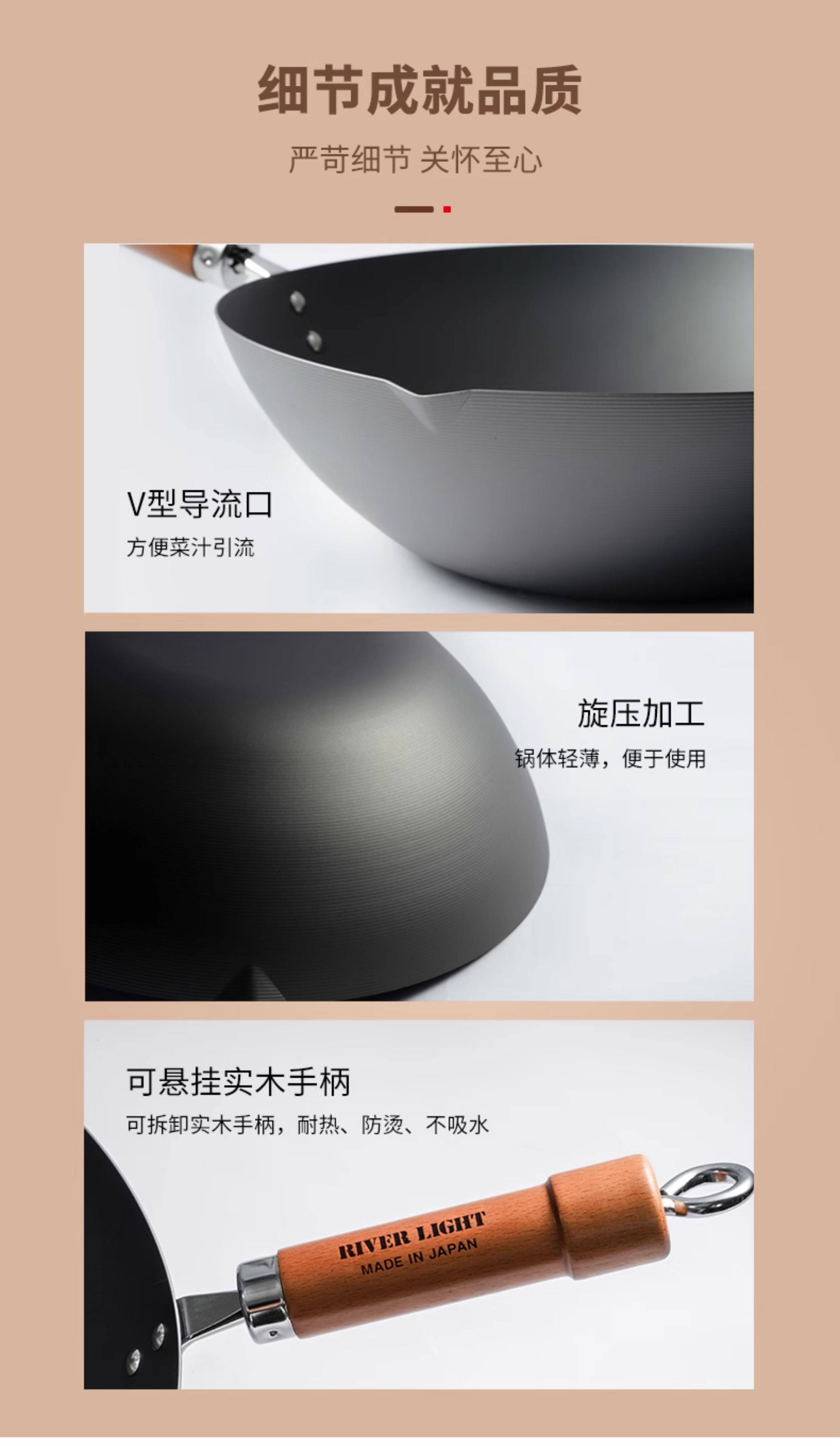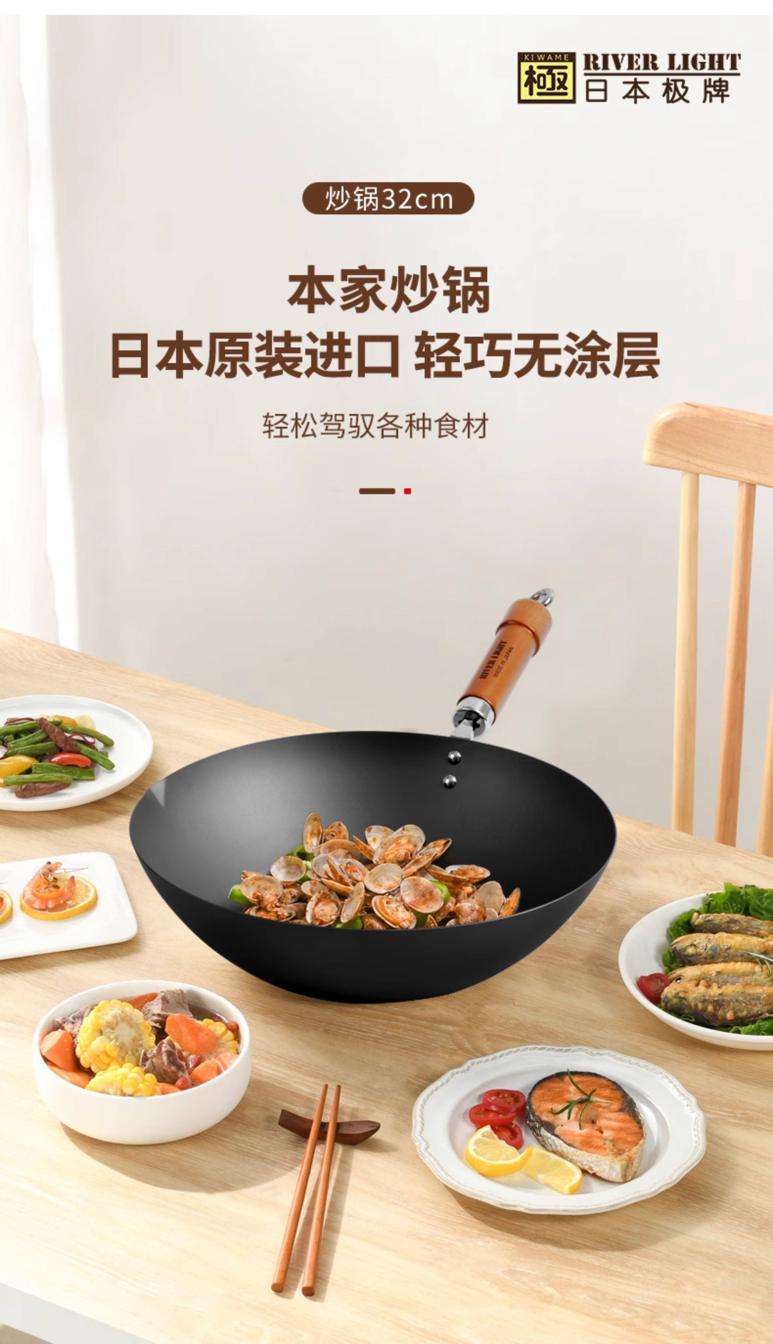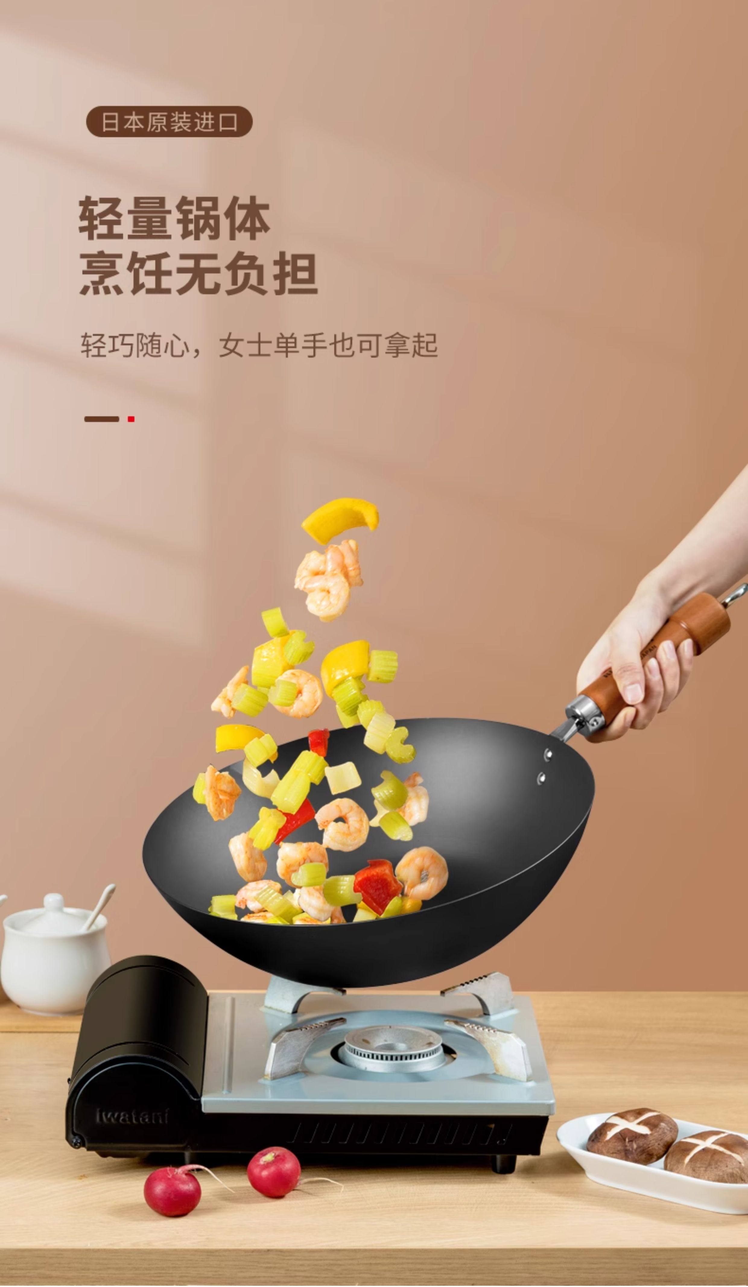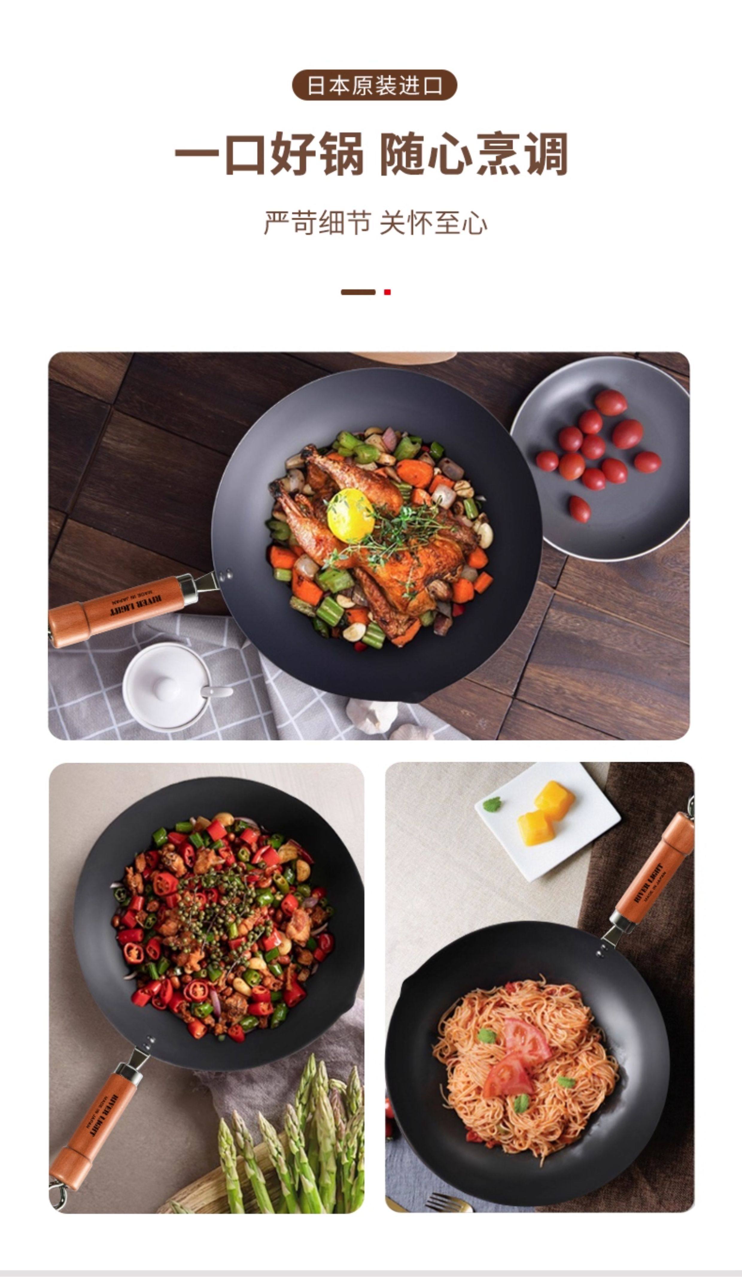 日本极牌进口无涂层炒锅本家铁锅32cm(含锅盖)