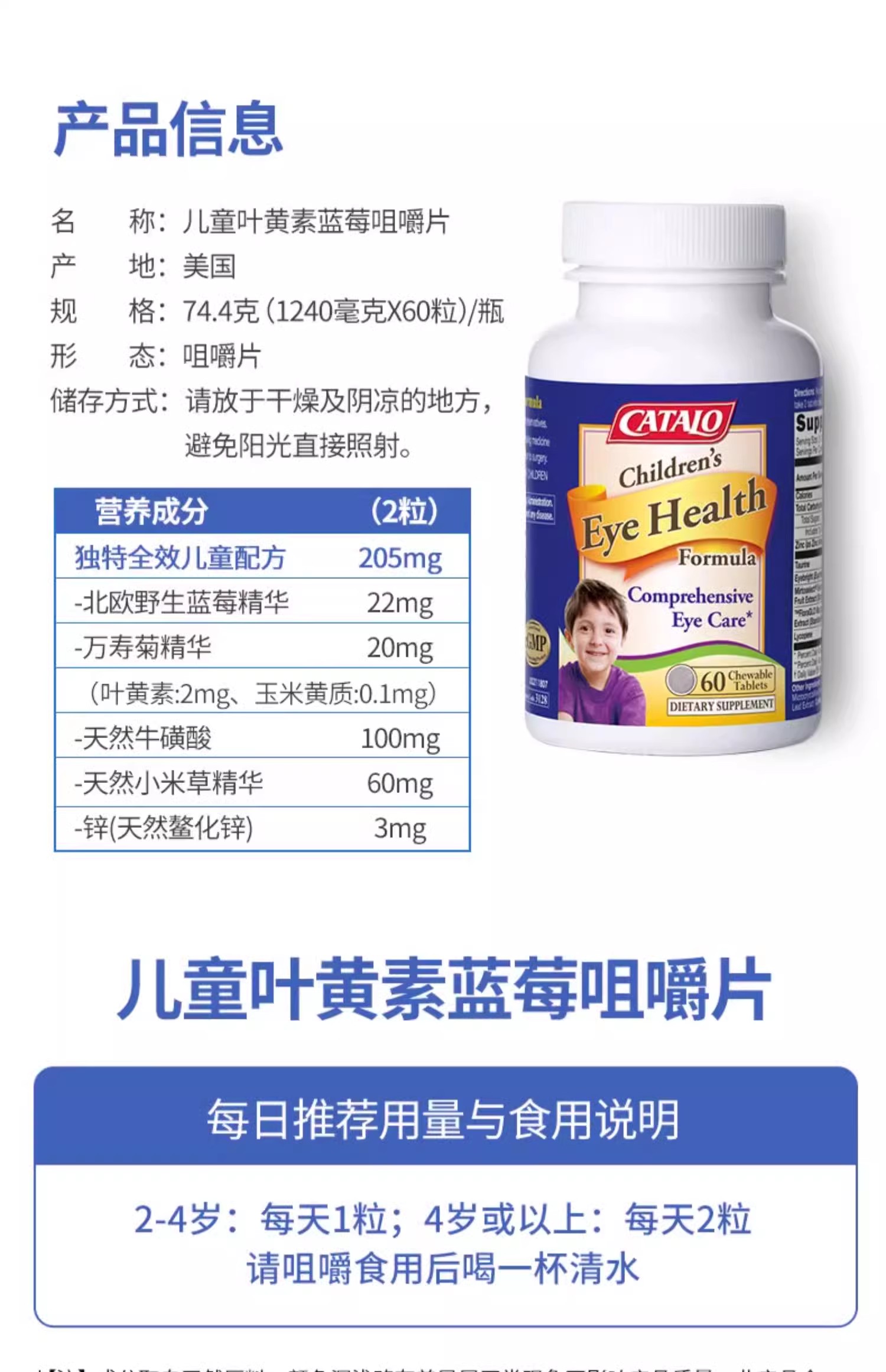 家得路CATALO 儿童蓝莓叶黄素咀嚼片 60粒