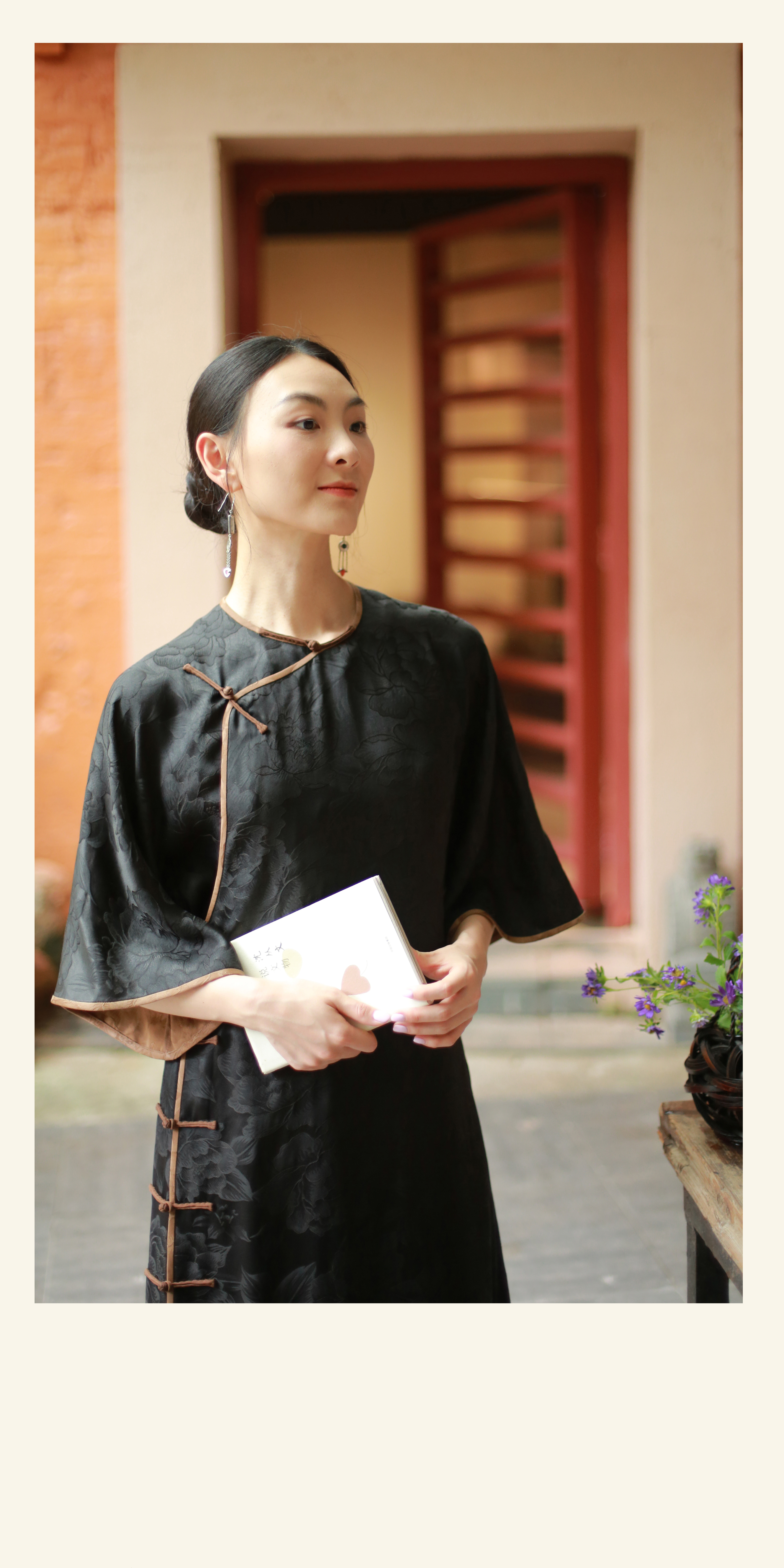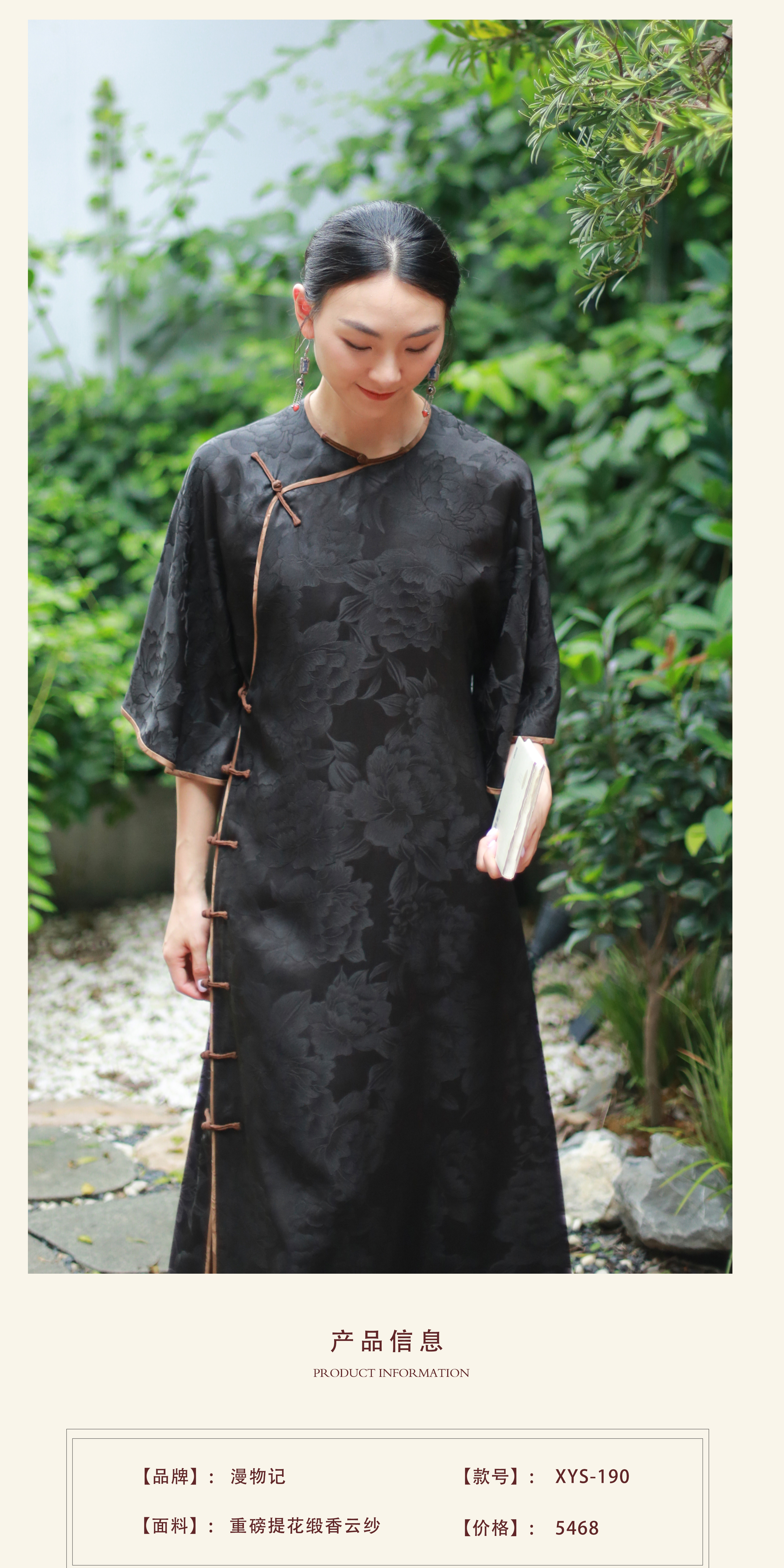 漫物记重磅提花圆领喇叭袖旗袍xys-190