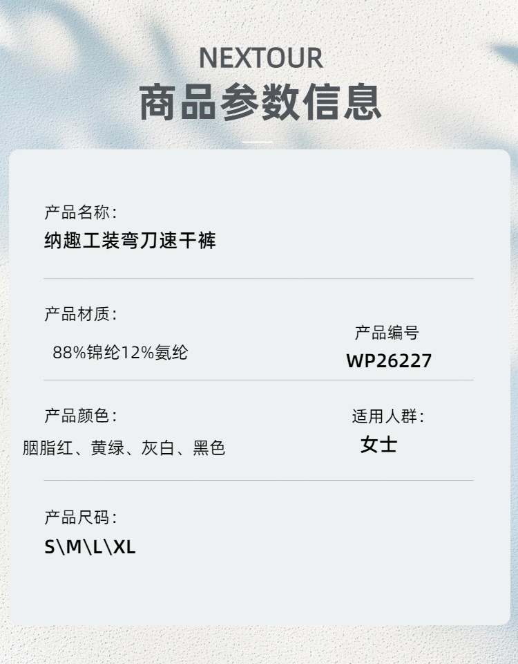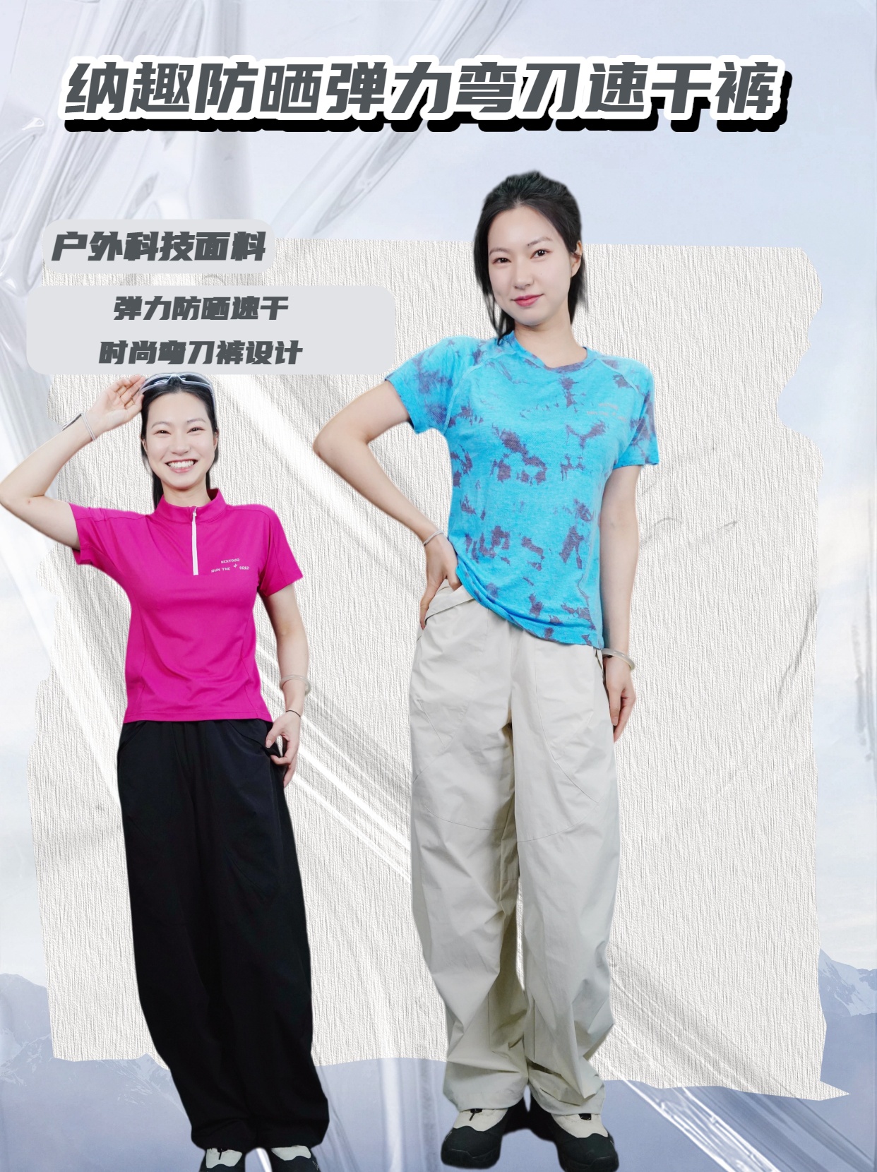 纳趣户外轻薄弹力弯刀速干裤时尚阔版工装运动裤女防晒登山快干裤