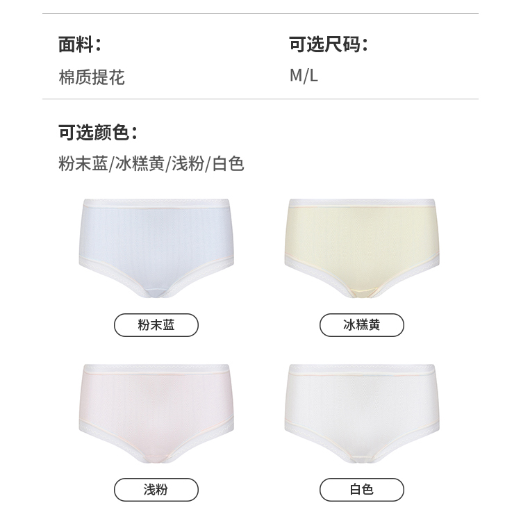 都市丽人基础系列舒肤棉内裤女棉提花纯棉女士内裤中腰平角内裤LK45A9