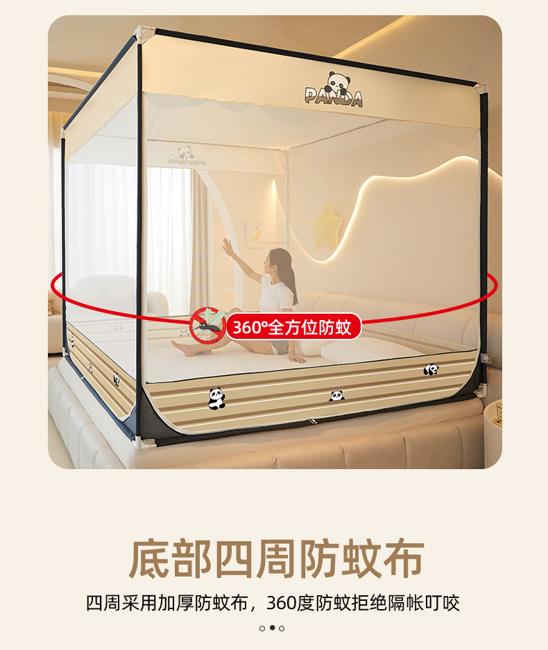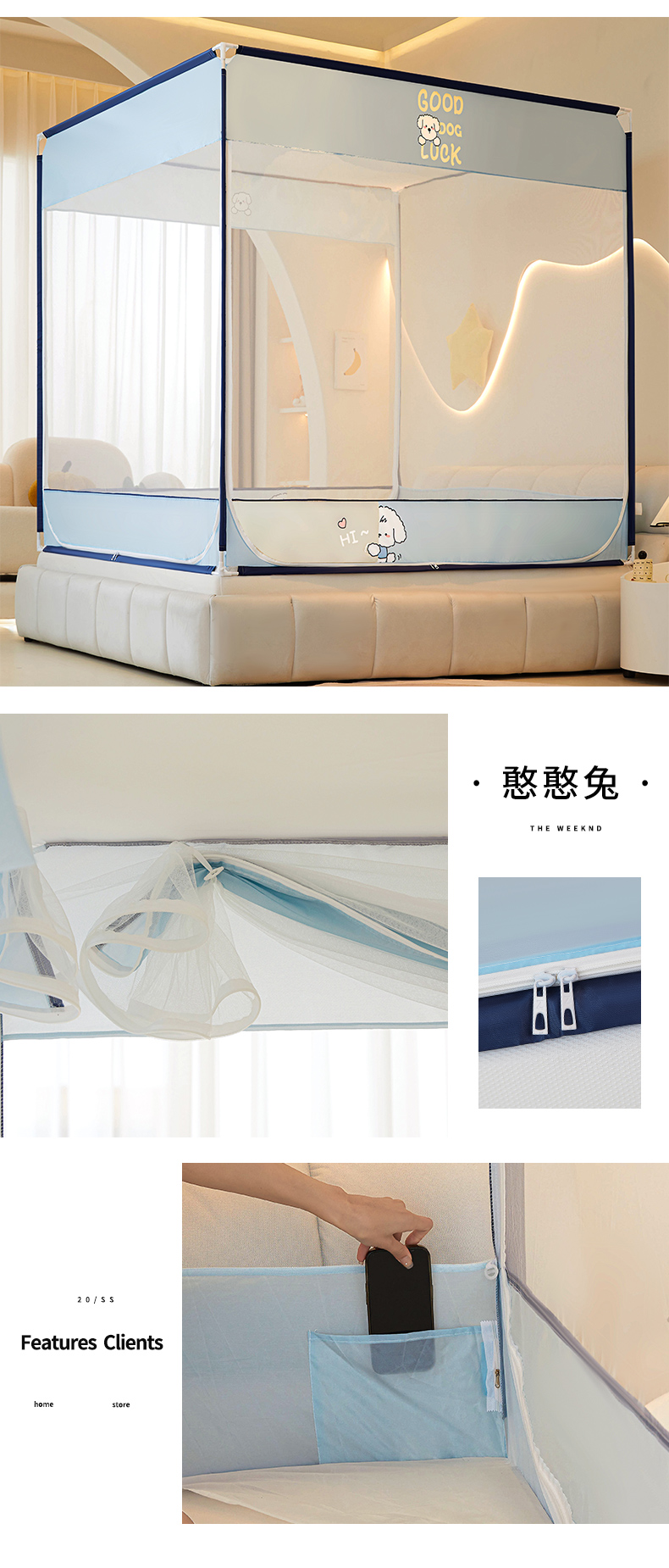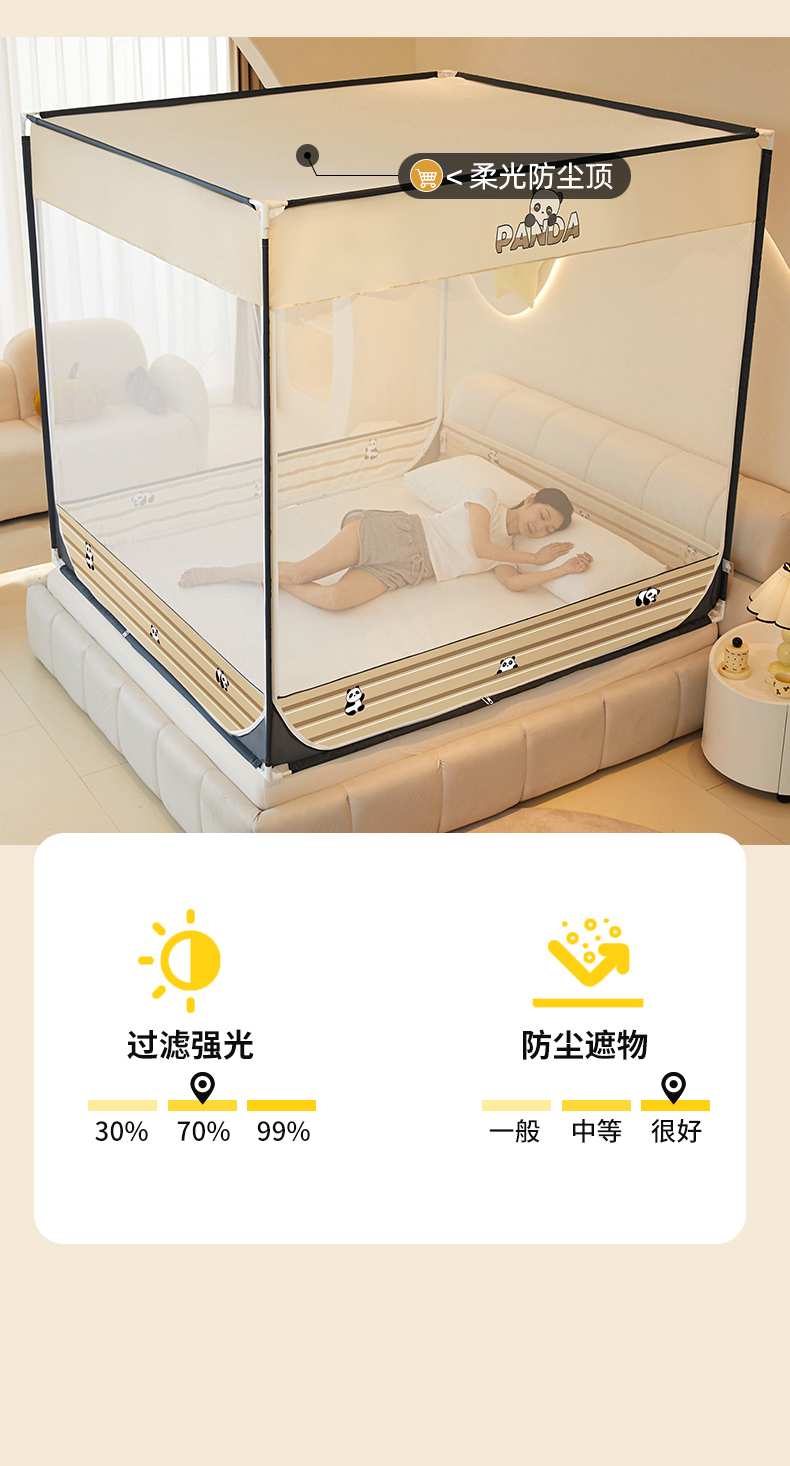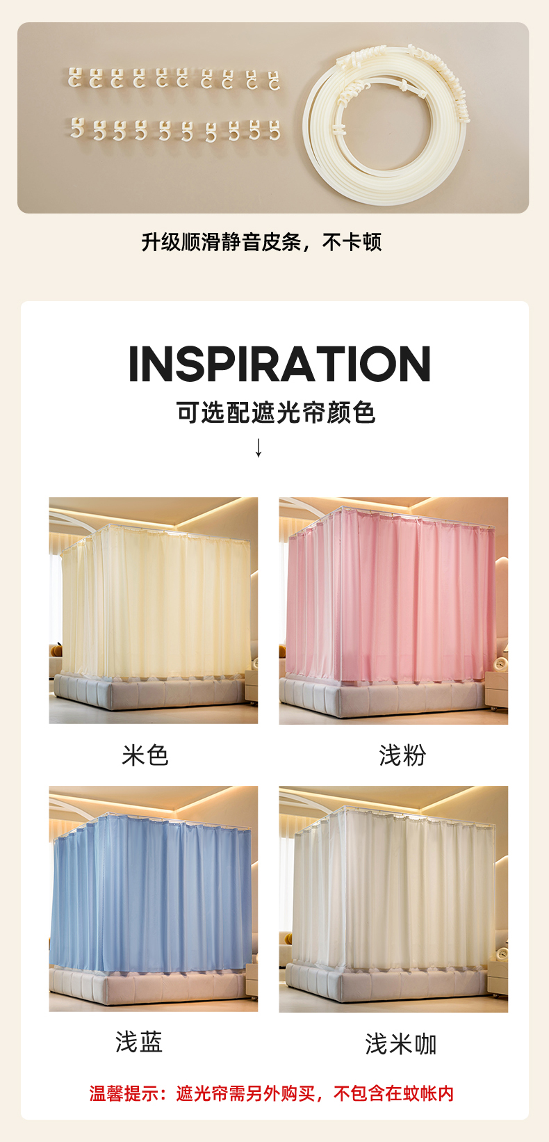 自然醒A类遮光蚊帐家用卧室儿童防摔床笠款蚊账免安装床幔带防尘顶2401HH