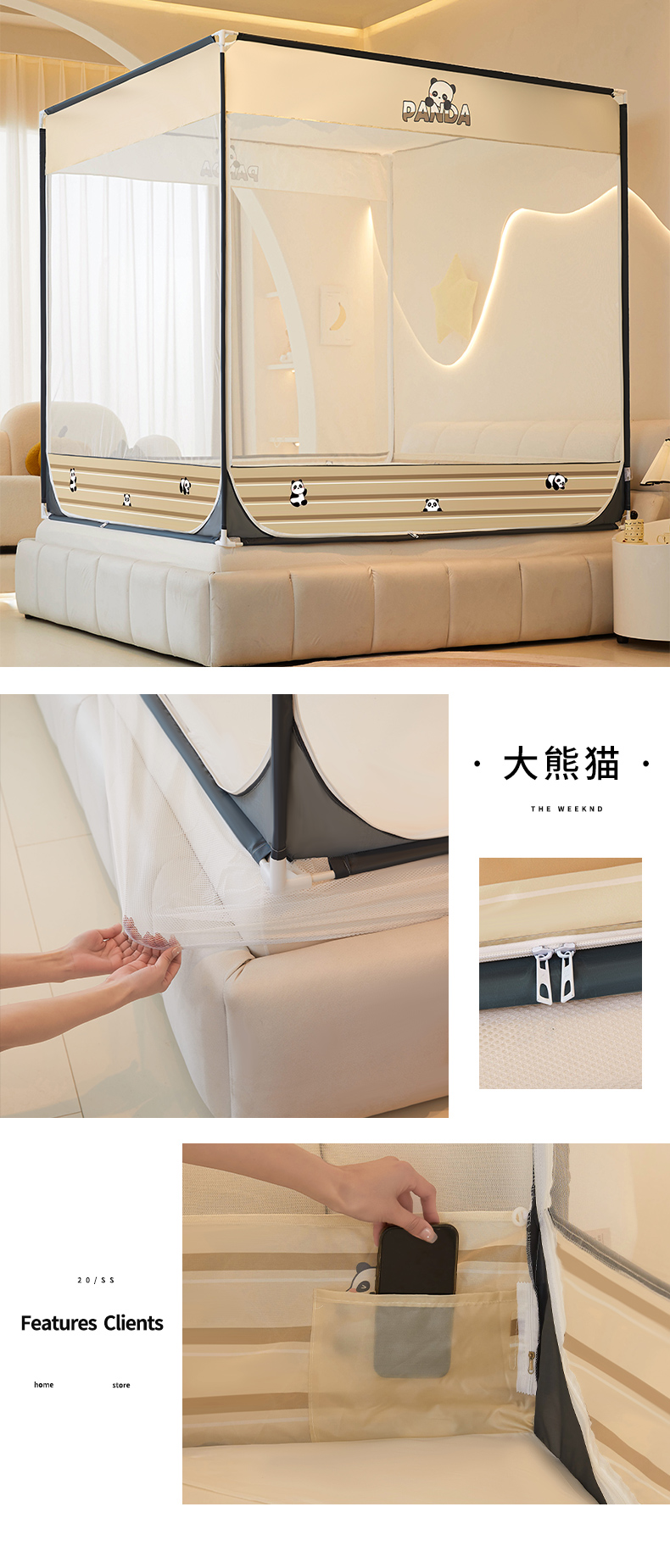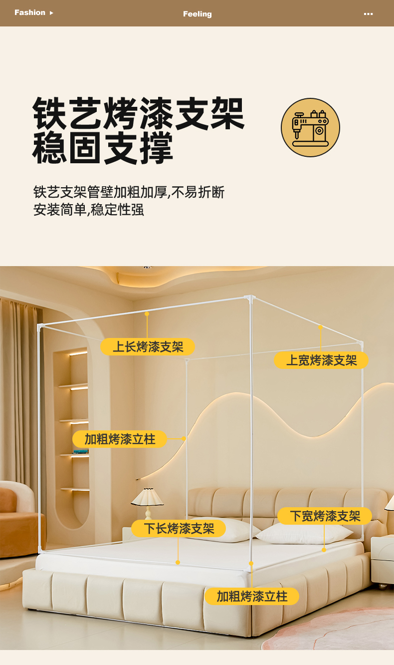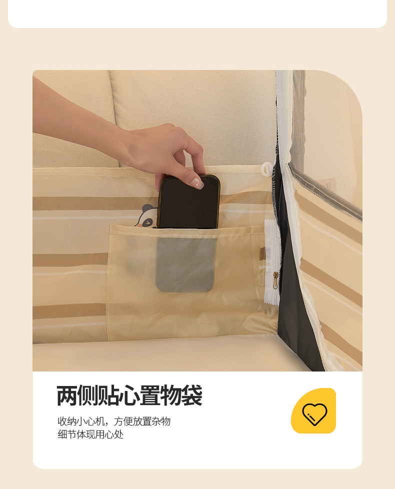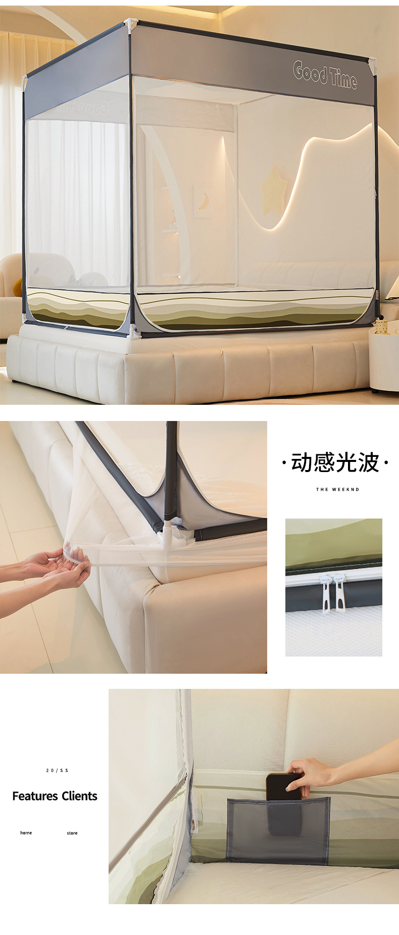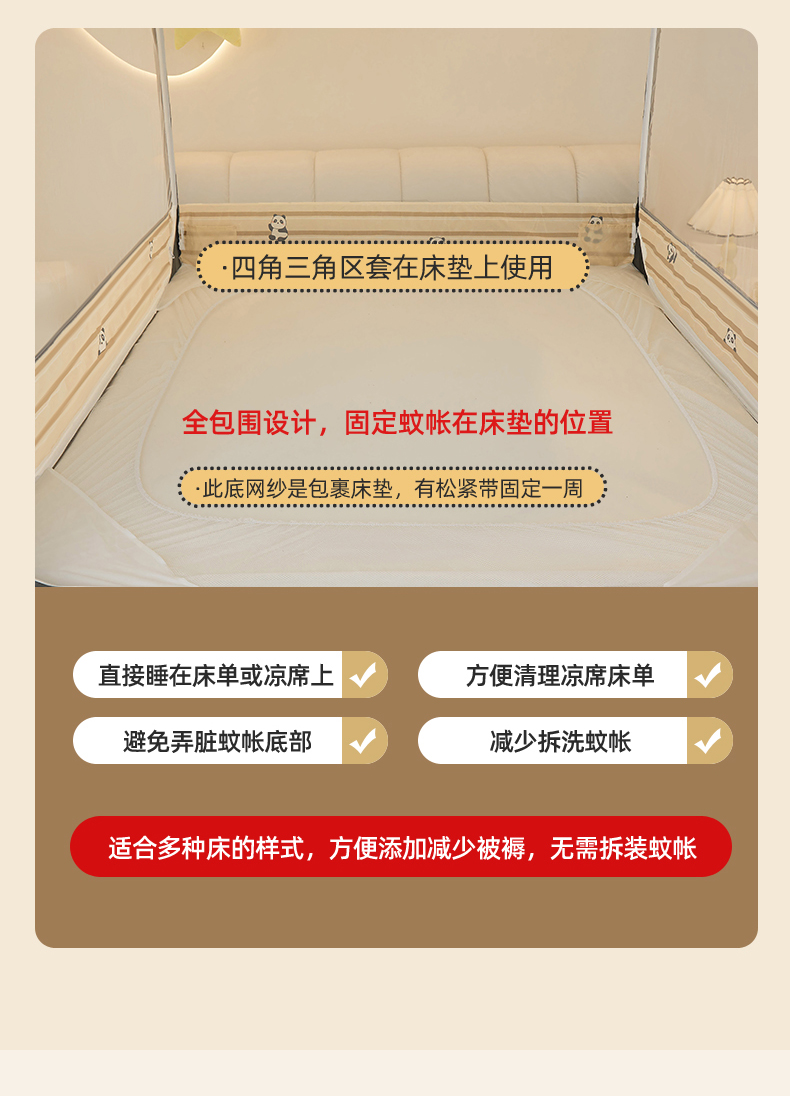 自然醒A类遮光蚊帐家用卧室儿童防摔床笠款蚊账免安装床幔带防尘顶2401HH