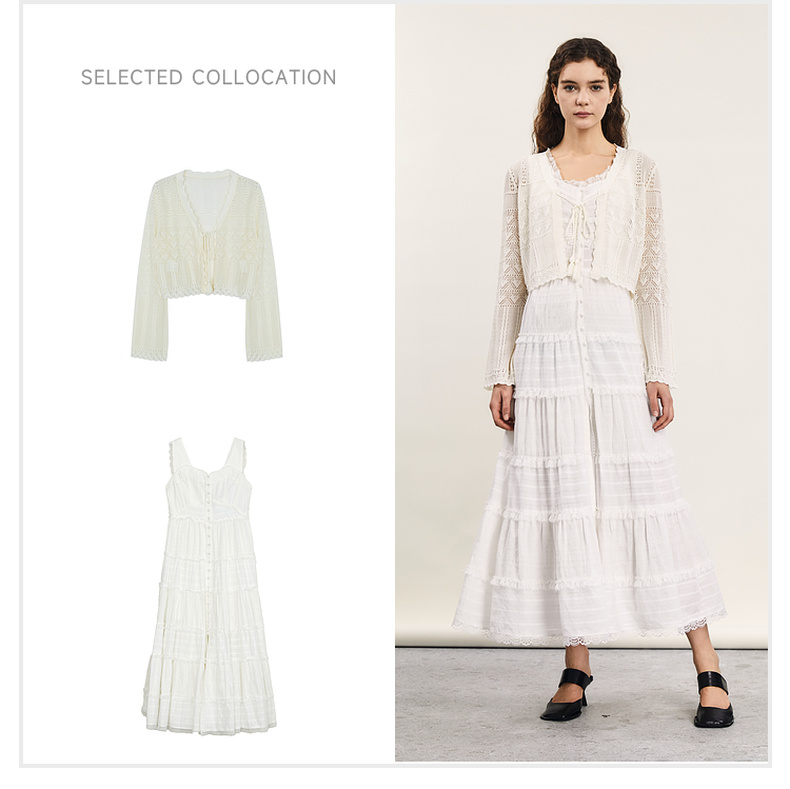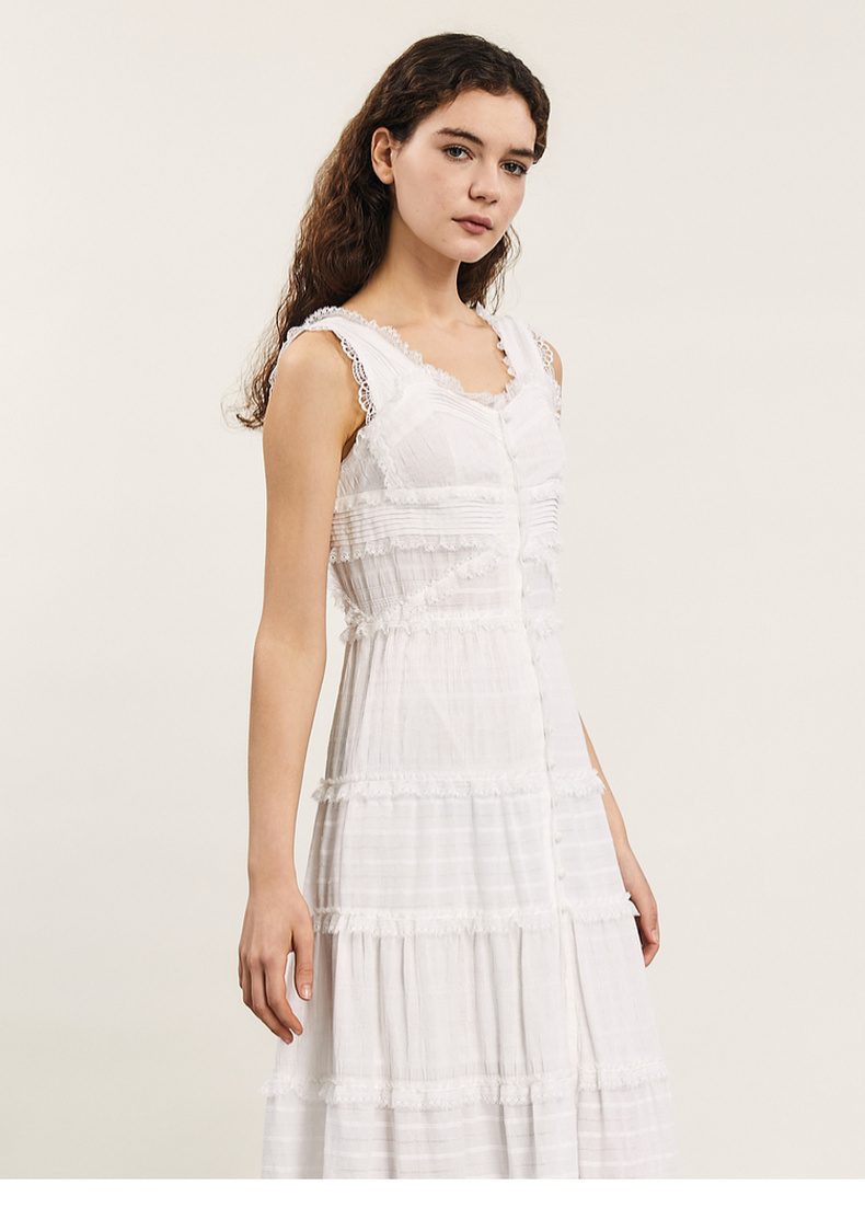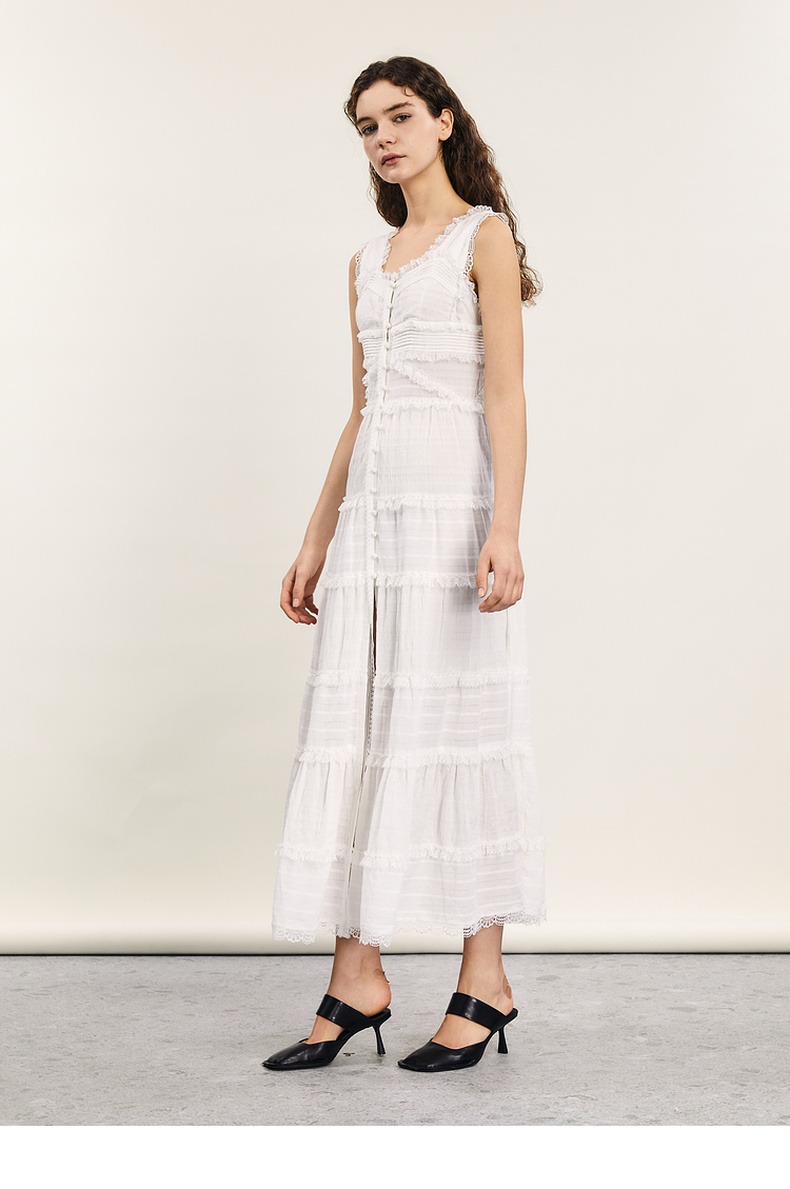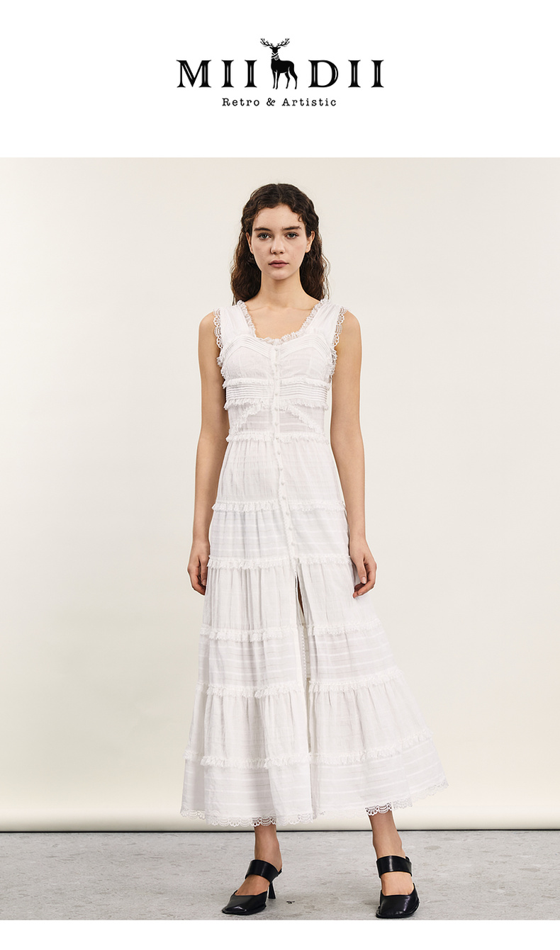 谜底高端连衣裙无袖2024年夏款复古风蕾丝拼接刺绣长裙242GL0630