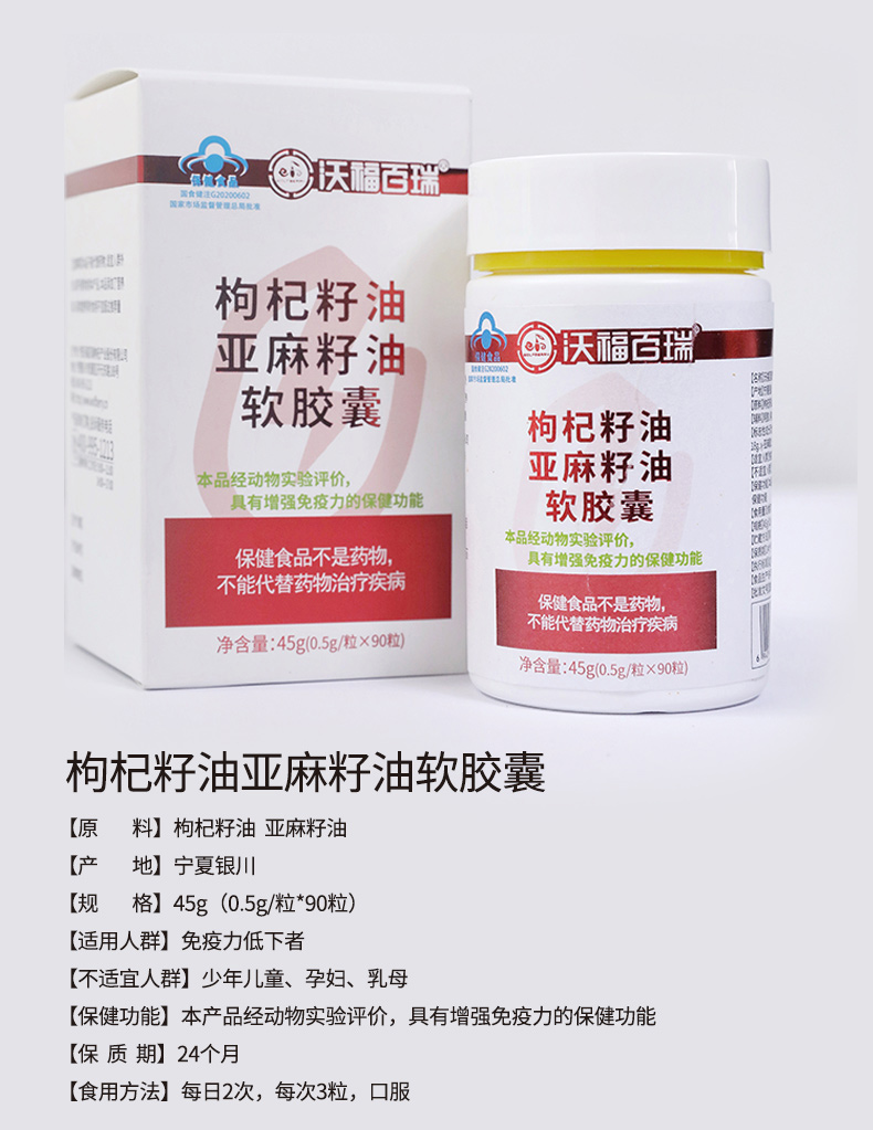 沃福百瑞枸杞籽油亚麻籽油软胶囊90粒/瓶