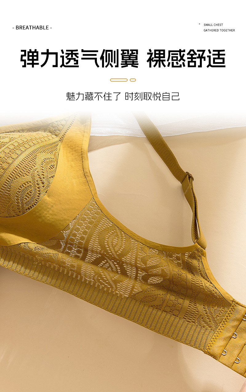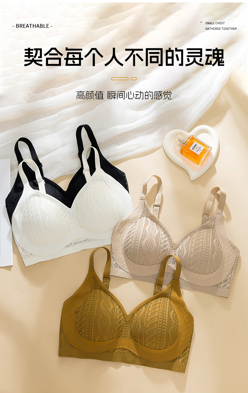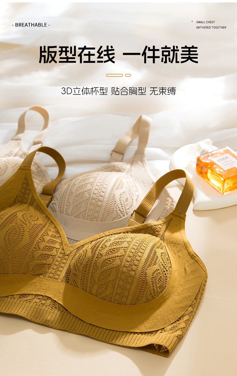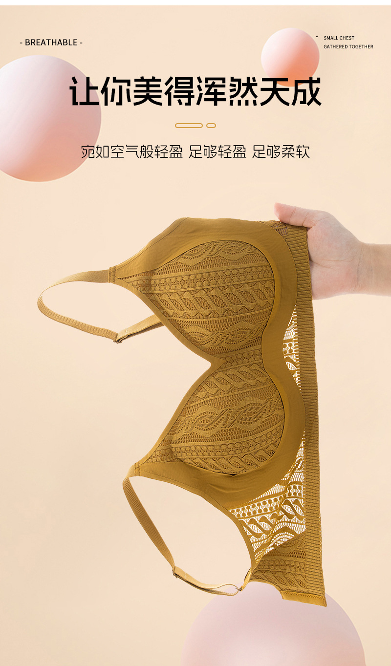 轻盈无感 穿了和没穿一样 蕾丝无痕内衣女大胸显小胸聚拢上托防下垂提拉无钢圈固定杯文胸罩