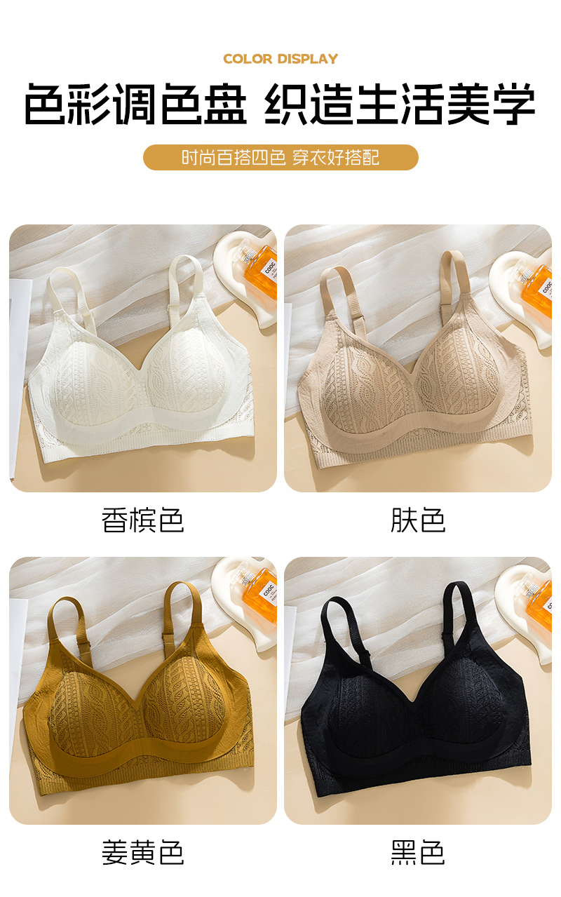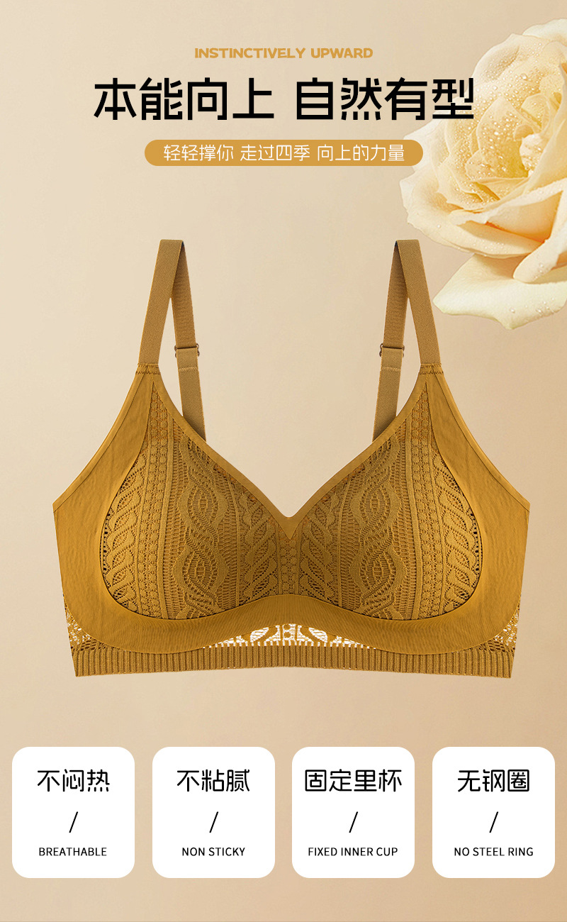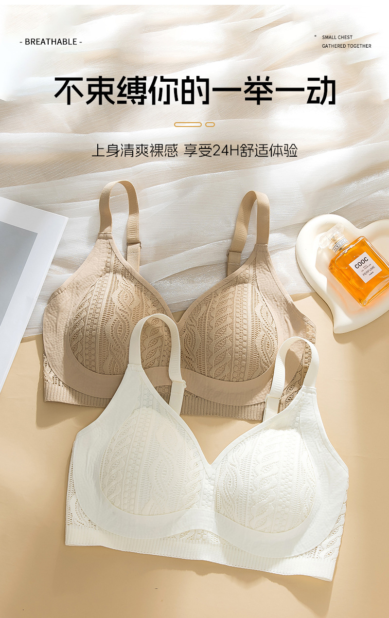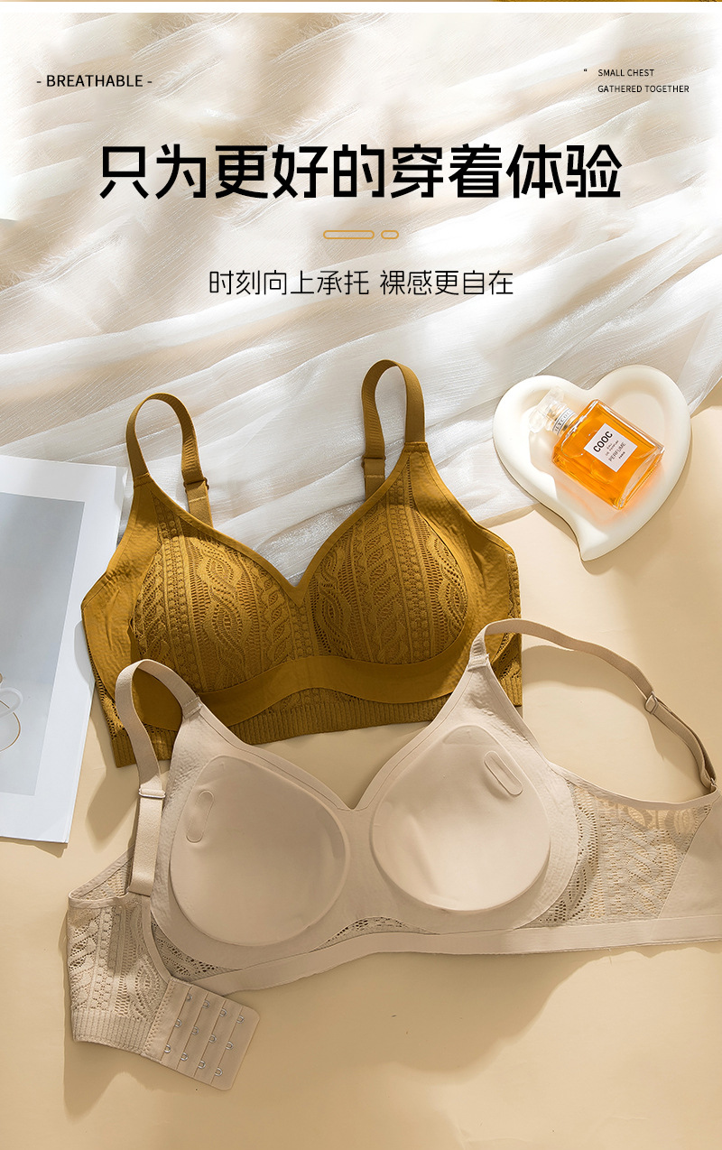 轻盈无感 穿了和没穿一样 蕾丝无痕内衣女大胸显小胸聚拢上托防下垂提拉无钢圈固定杯文胸罩