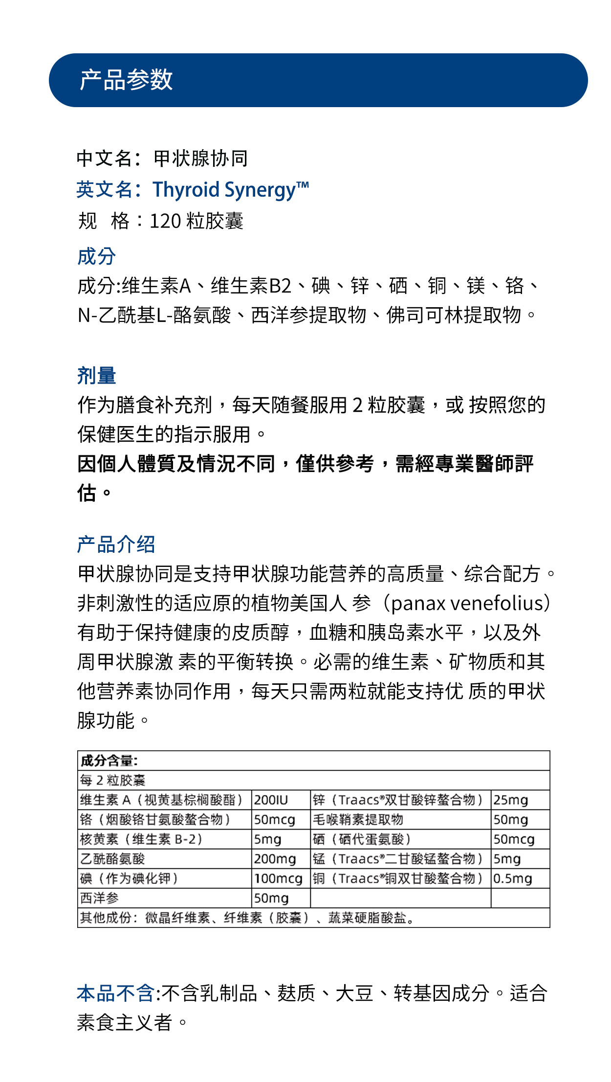 美国DFH 甲状腺协同Thyroid Synergy™ 120粒 #维生素A #NAC #西洋参提取物