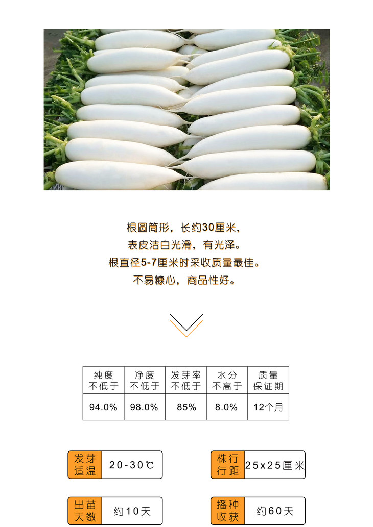 [庭院种子] 夏播白萝卜种子 "夏天使"
