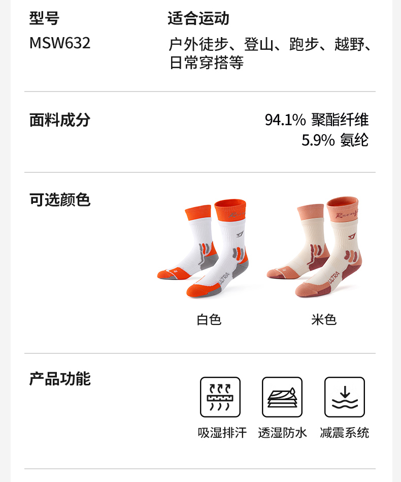 632肌动双袜口运动袜女中高帮健身瑜伽袜马拉松跑步袜户外登山徒步袜