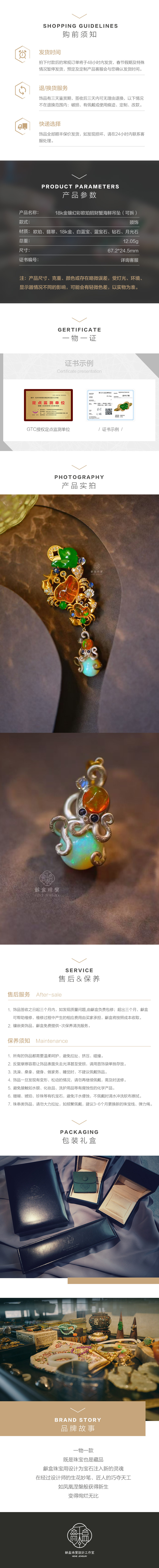 龢盒原创 18k金镶幻彩欧珀招财蟹海鲜吊坠(可拆)