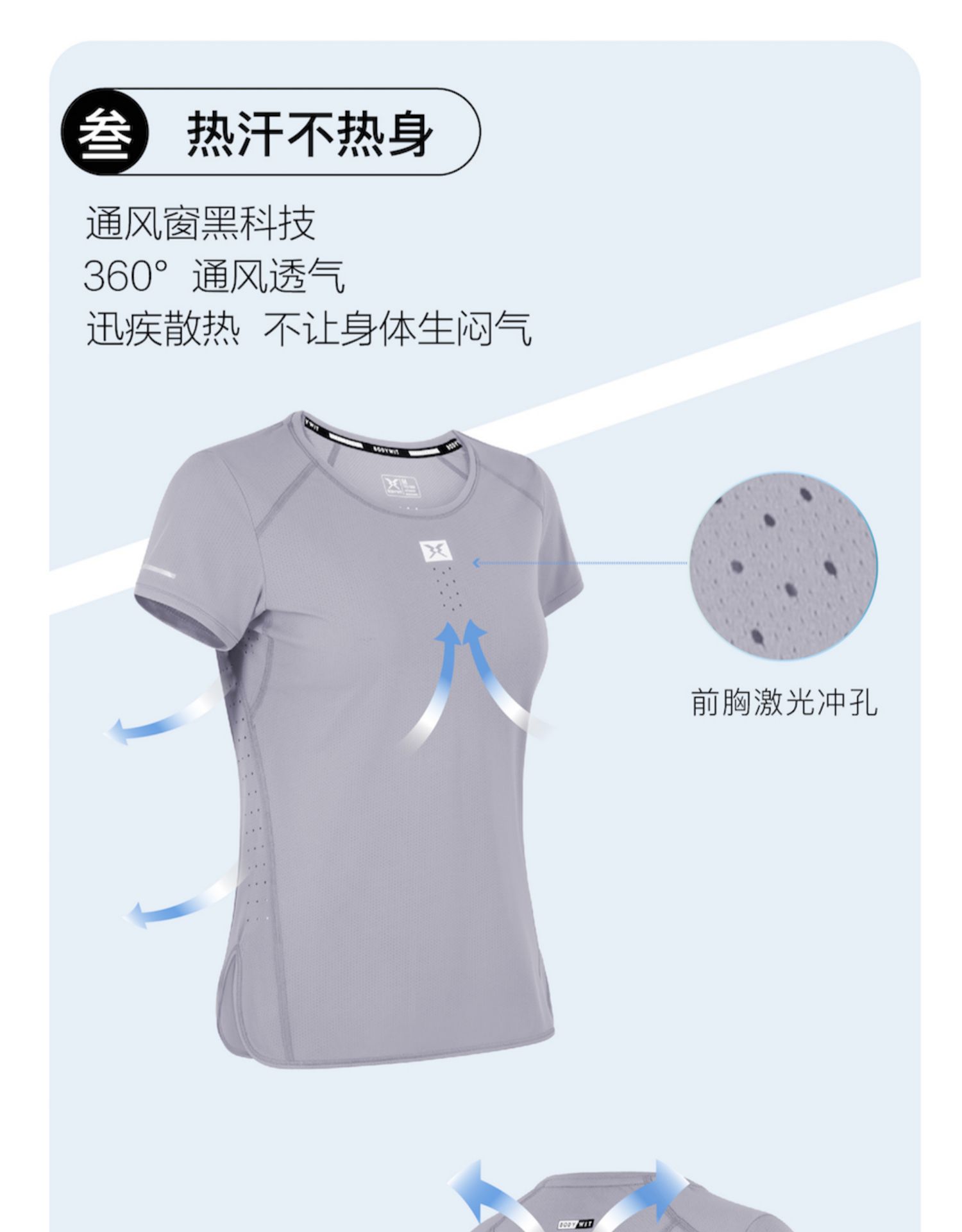身体智慧 BODYWIT 女款 绝尘 快干通风窗短袖T恤