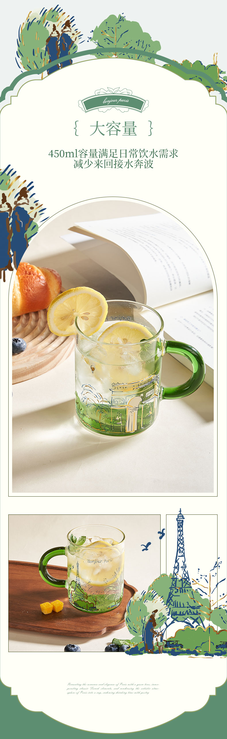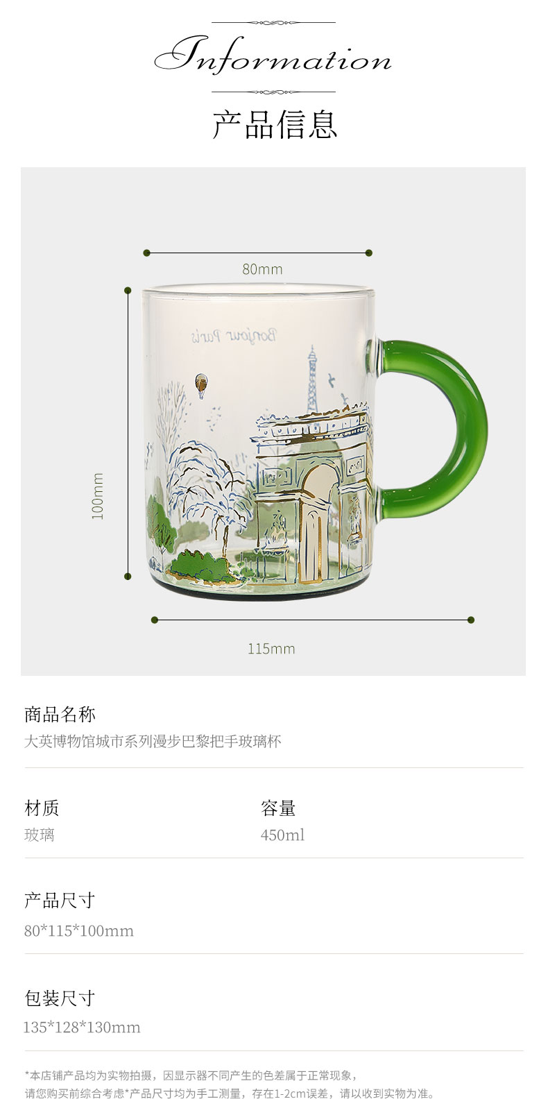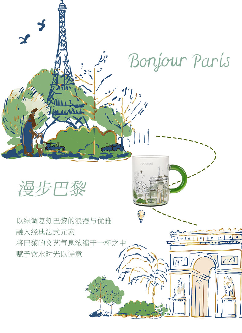 大英博物馆 城市系列 漫步巴黎把手 玻璃杯