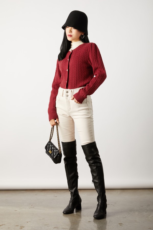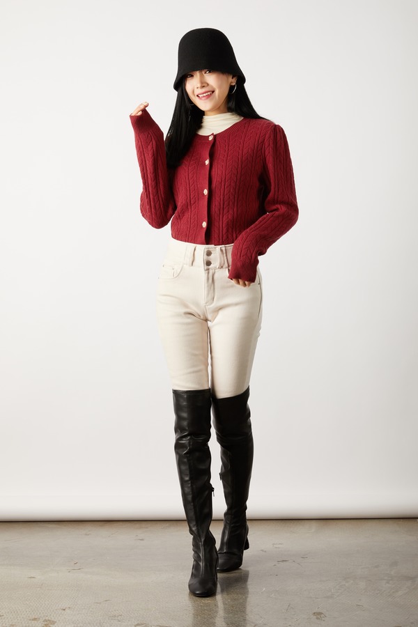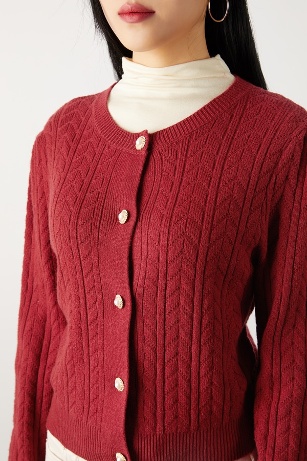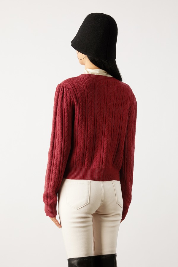 Le Malene 复古酒红色开衫毛衣外套 10940