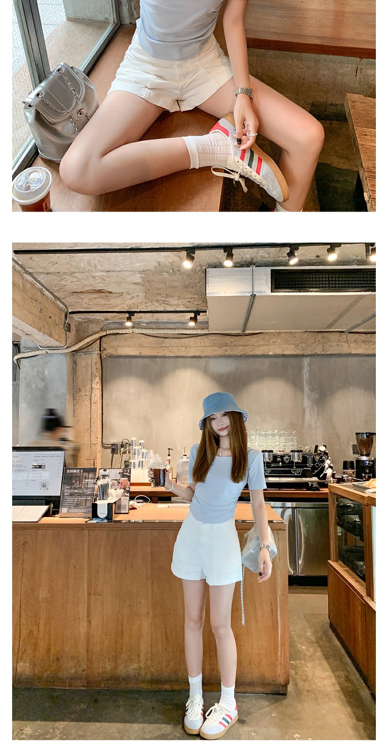 <曾小咸推荐> 现货秒杀!微信超特价!3色褶皱正肩短袖T 日常89.99 立减40 秒杀49.99!