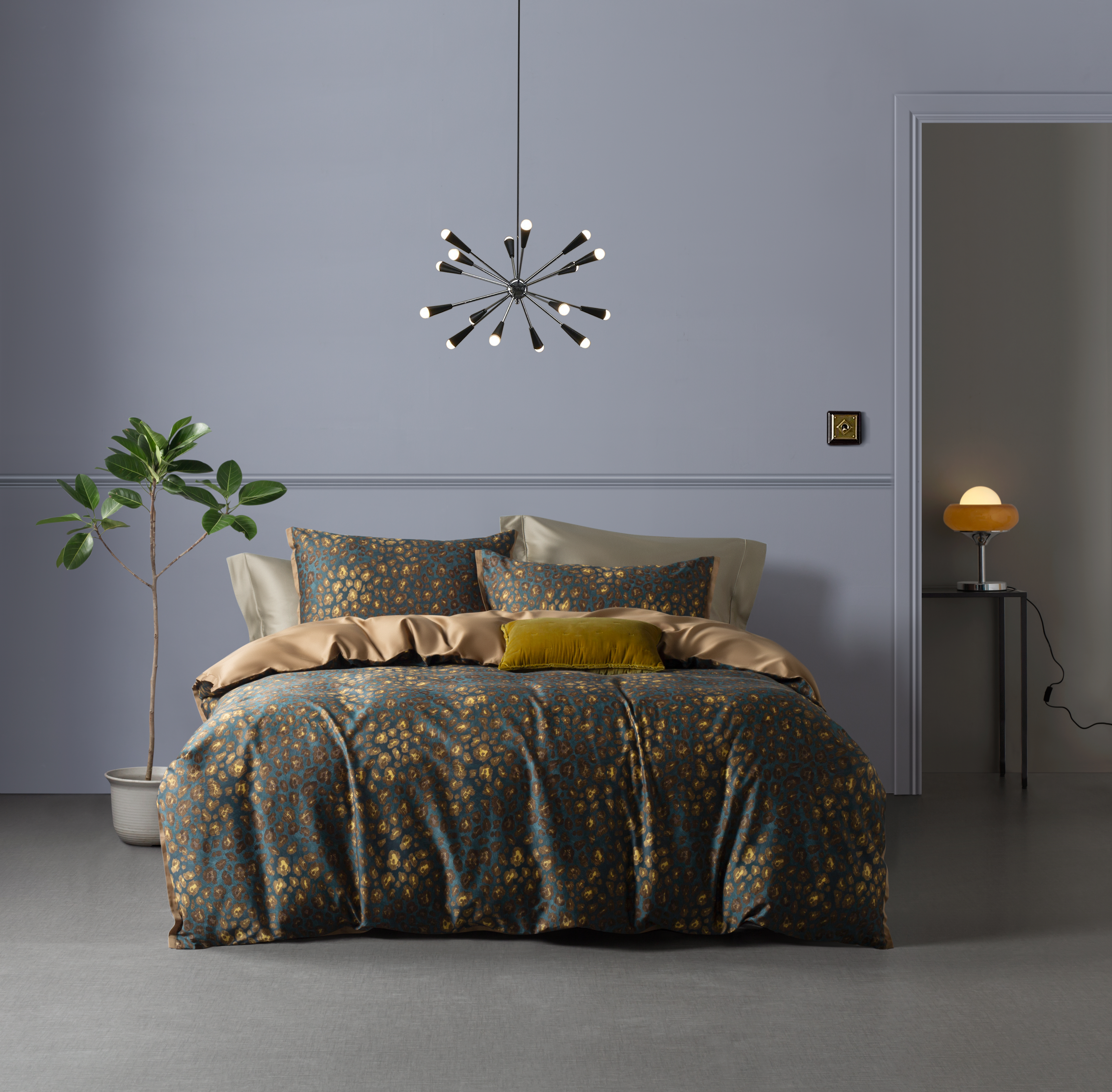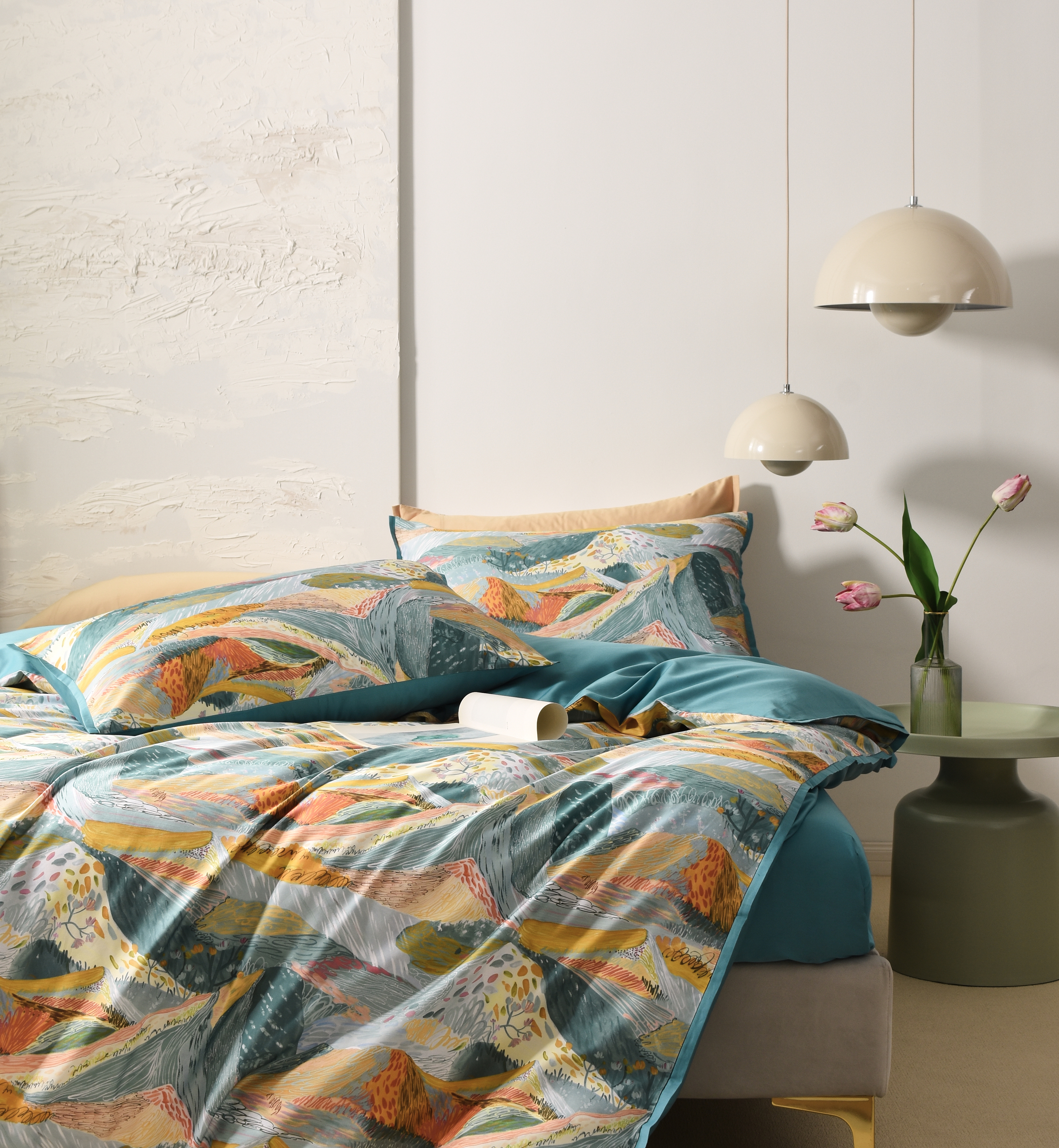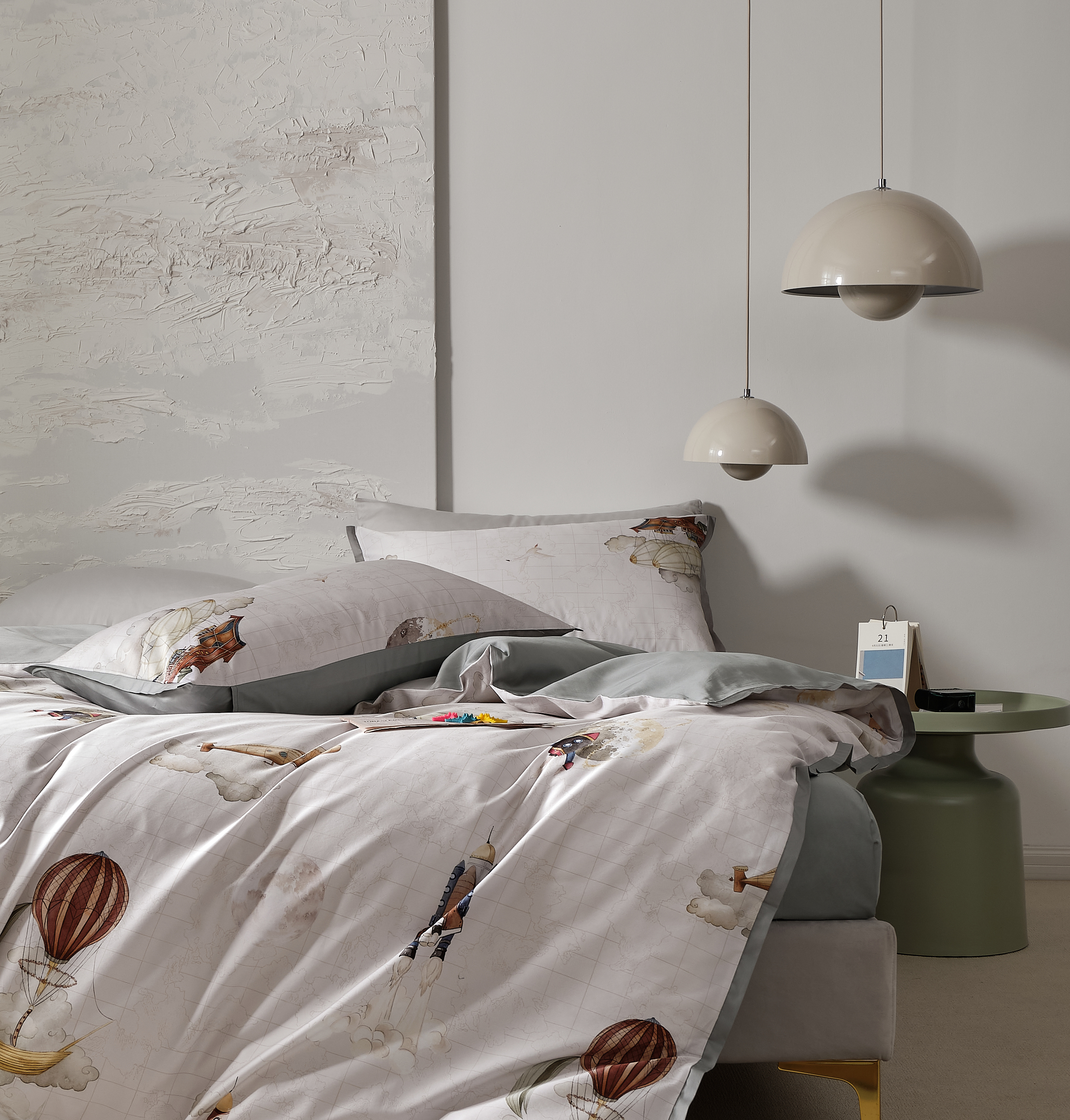 【下架】自然醒60支贡缎数码印花四件套长绒棉轻奢裸睡被套床上用品LB