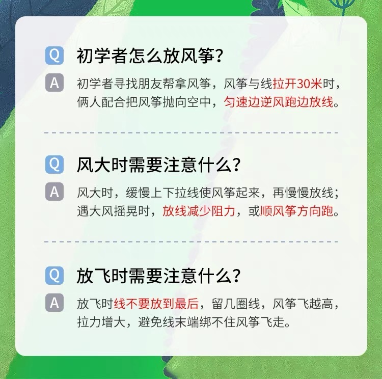 【出游好物丨吾家春季风筝系列】选用优质布料,轻盈结实高韧性不易破裂,包边加固玻璃钢撑杆,不易折断轻巧易飞,卡通图案加飘带,风一吹很灵动大小朋友都喜欢,周末阳光正好,微风不燥,最适合和孩子一起放风筝了