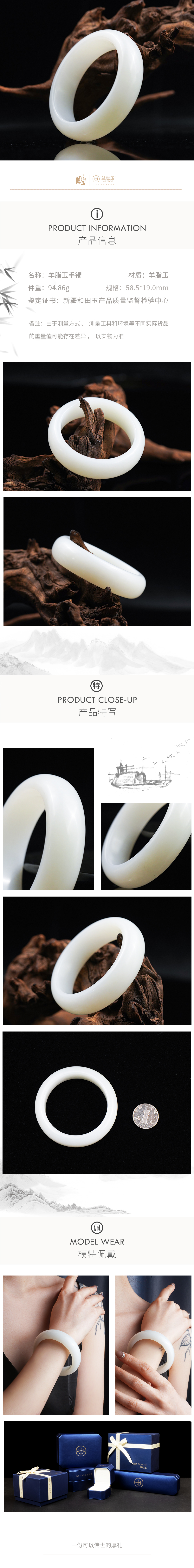 新疆国玉盟世玉和田玉糖羊脂玉手镯58.5圈口【带证书·顺丰物流】