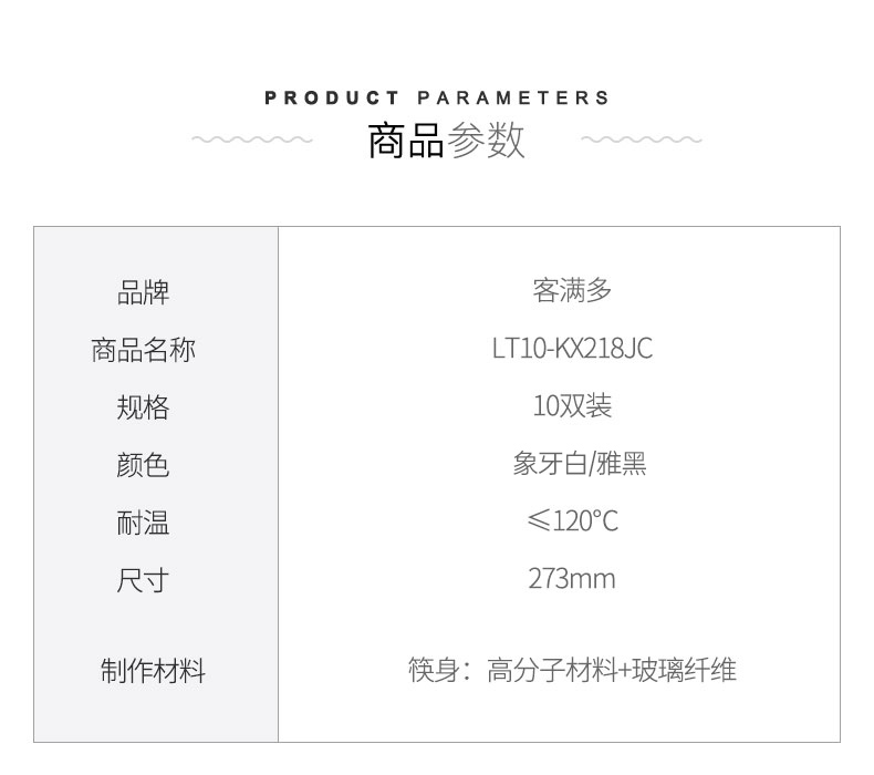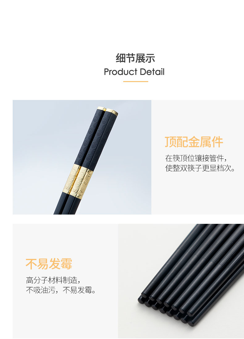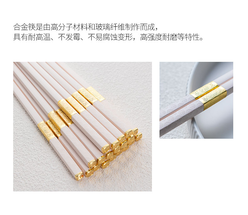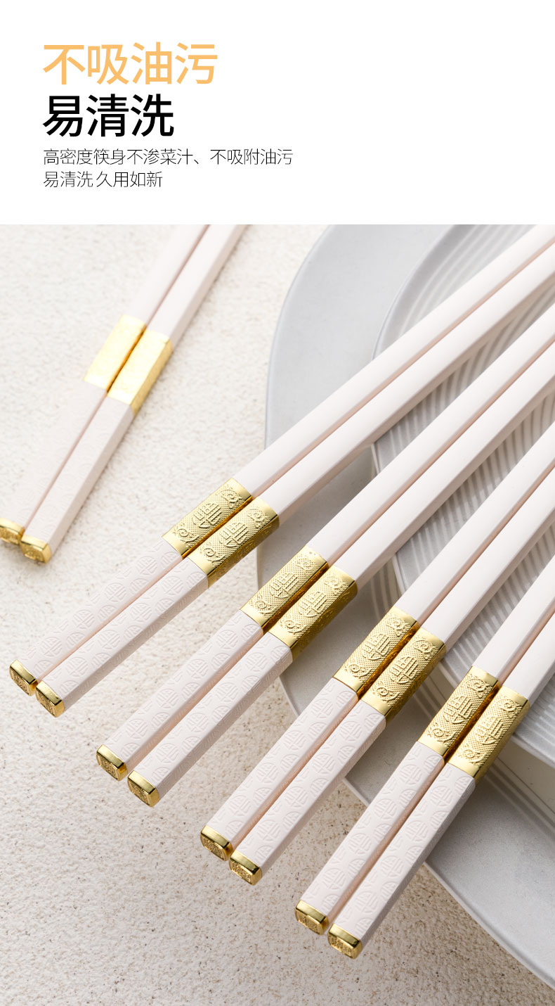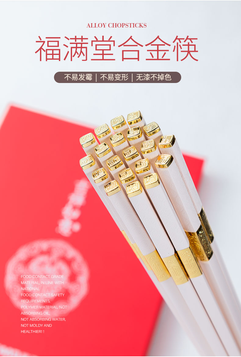 客满多家用高档防滑防霉耐高温 福满堂合金筷10双装