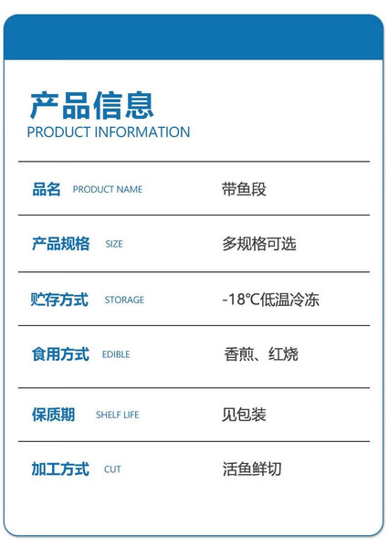 弹指鲜生 舟山带鱼段量贩装1000g*2