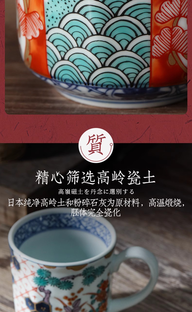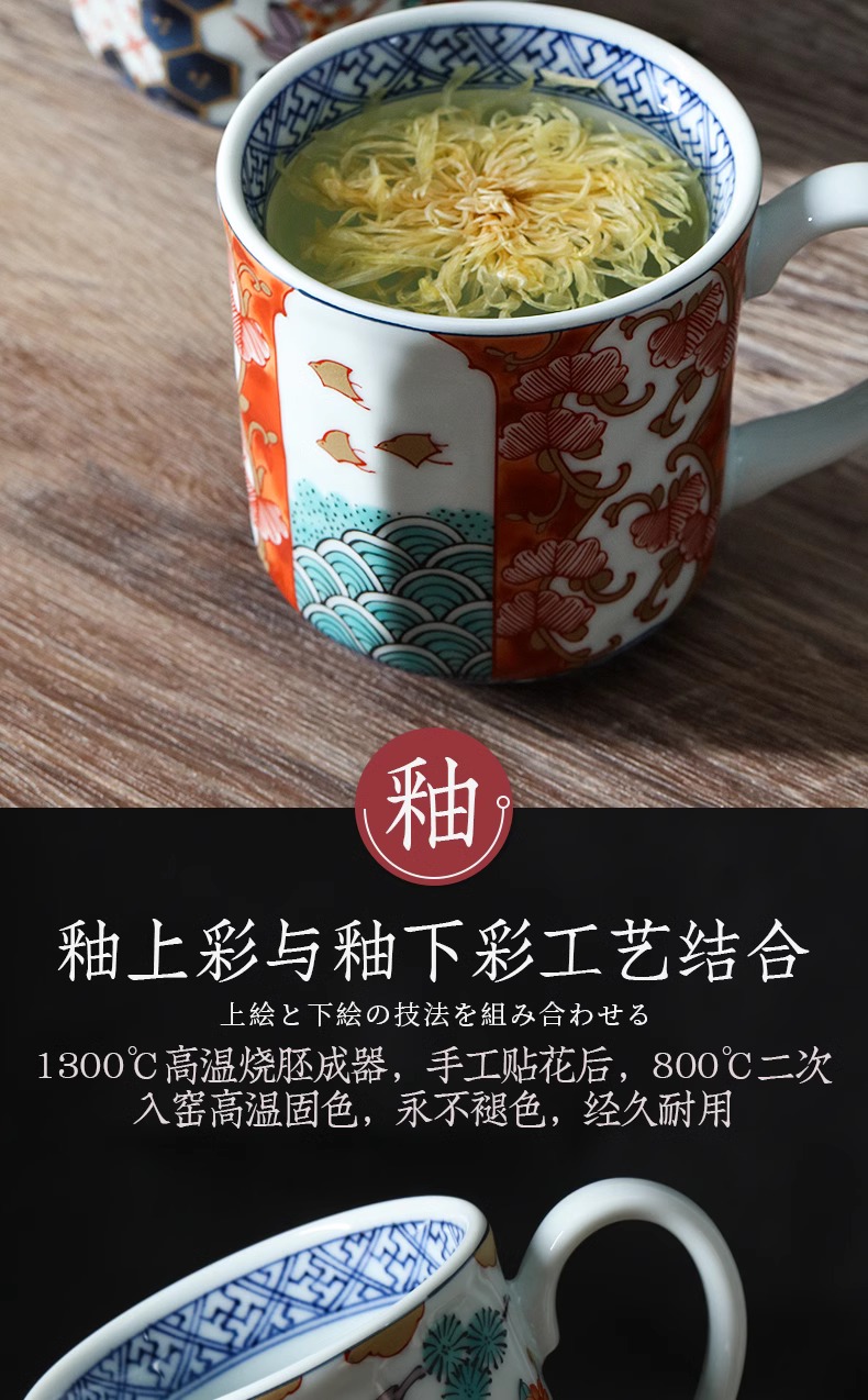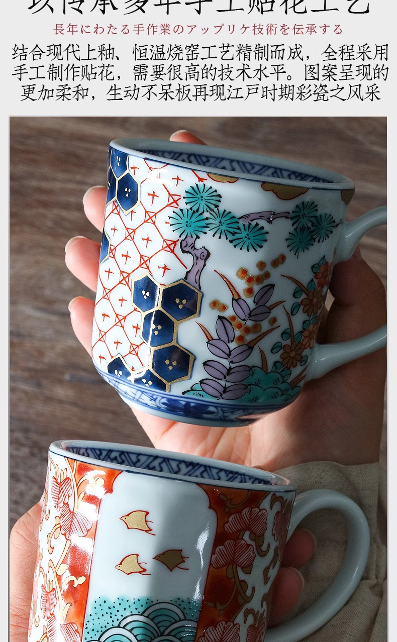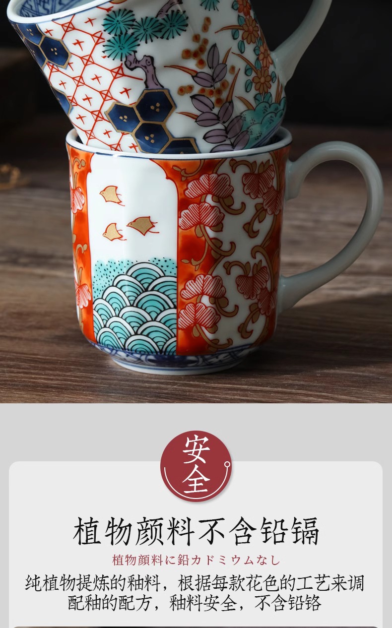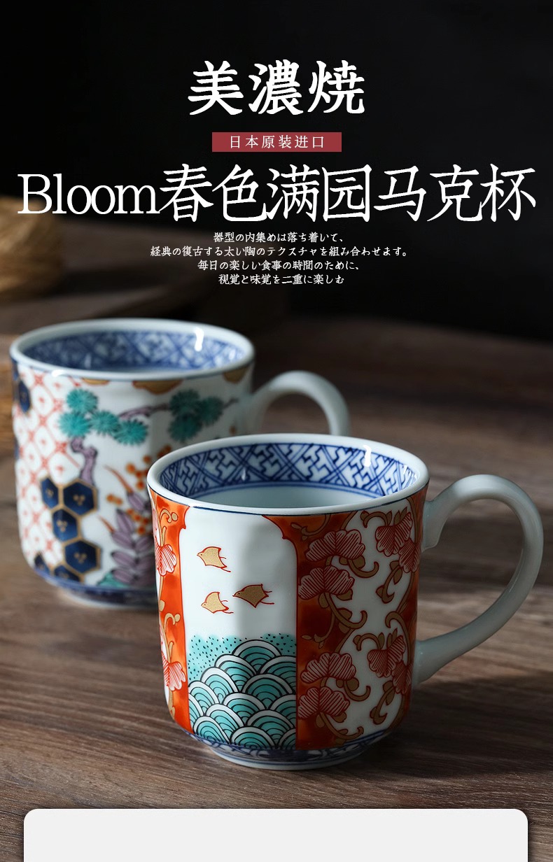 美浓烧日式古伊万马克杯两杯套装美浓烧古伊万五杯茶具 陶瓷杯子情侣个性手绘创意家用大容量350ml