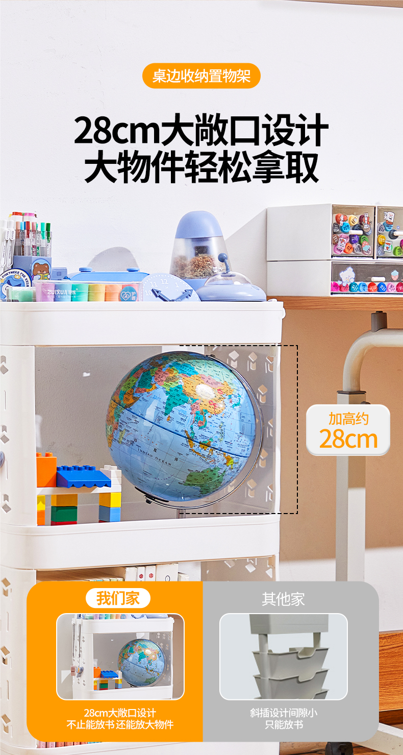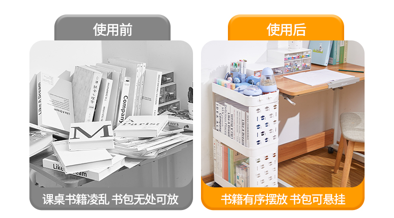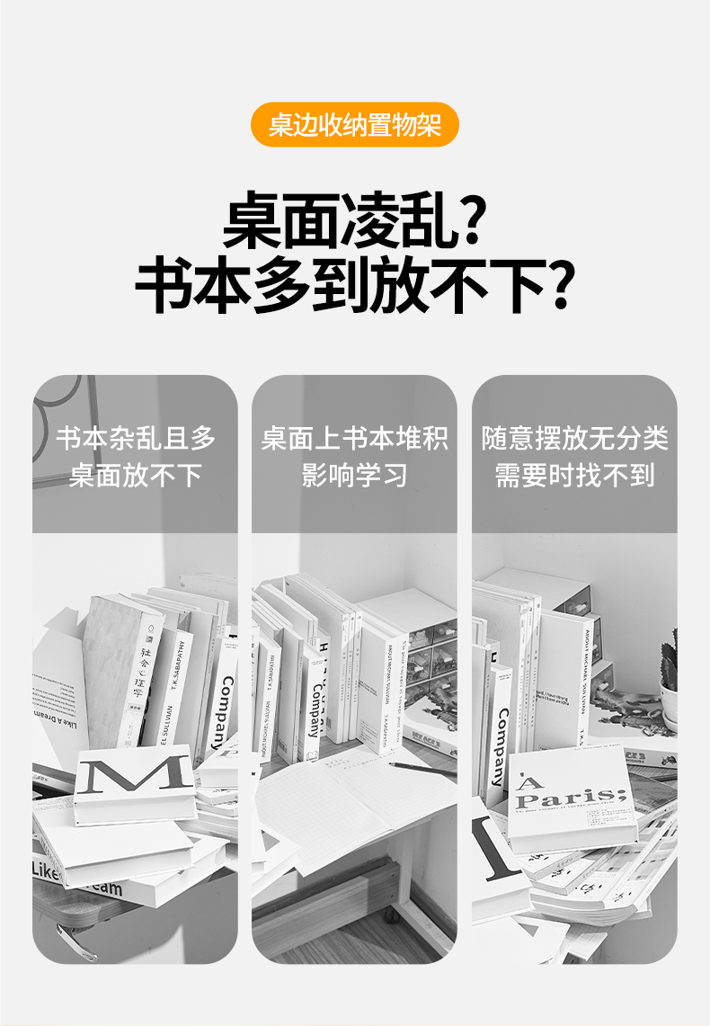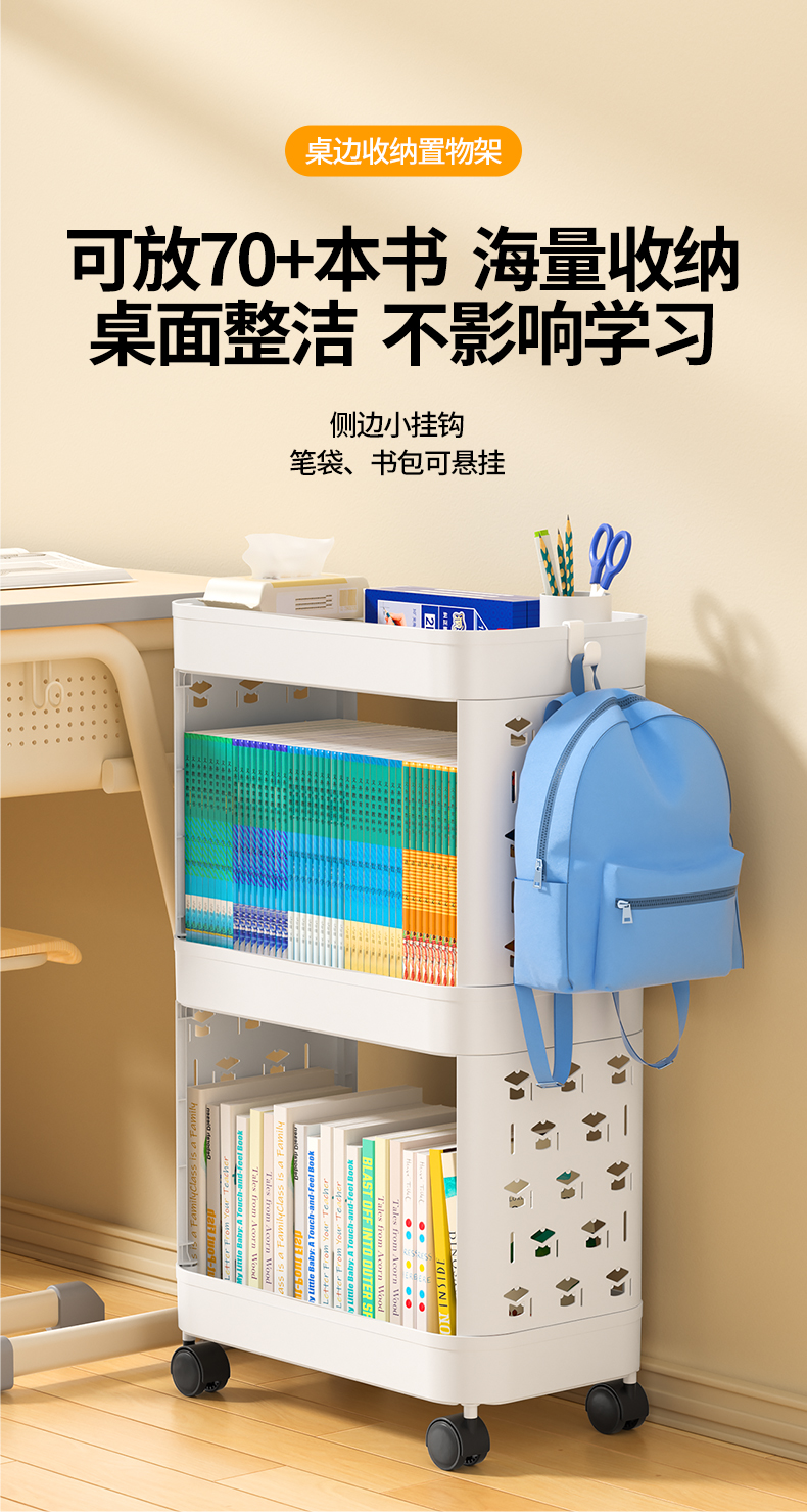 猫太子可移动书架桌边置物架学生书桌侧边收纳架高中初中书本书立架挂书袋书包教室自律收纳神器简易挂书篮