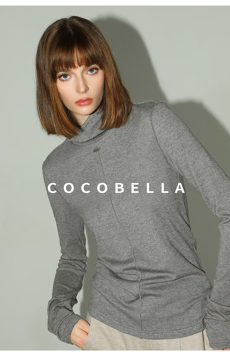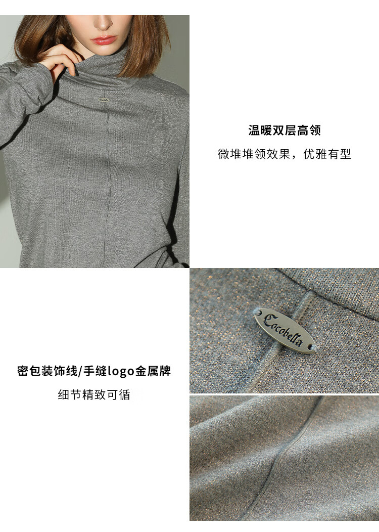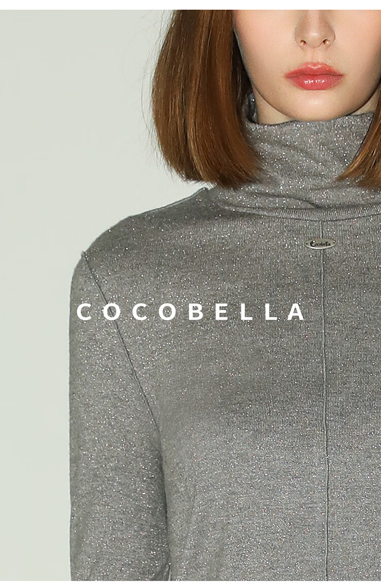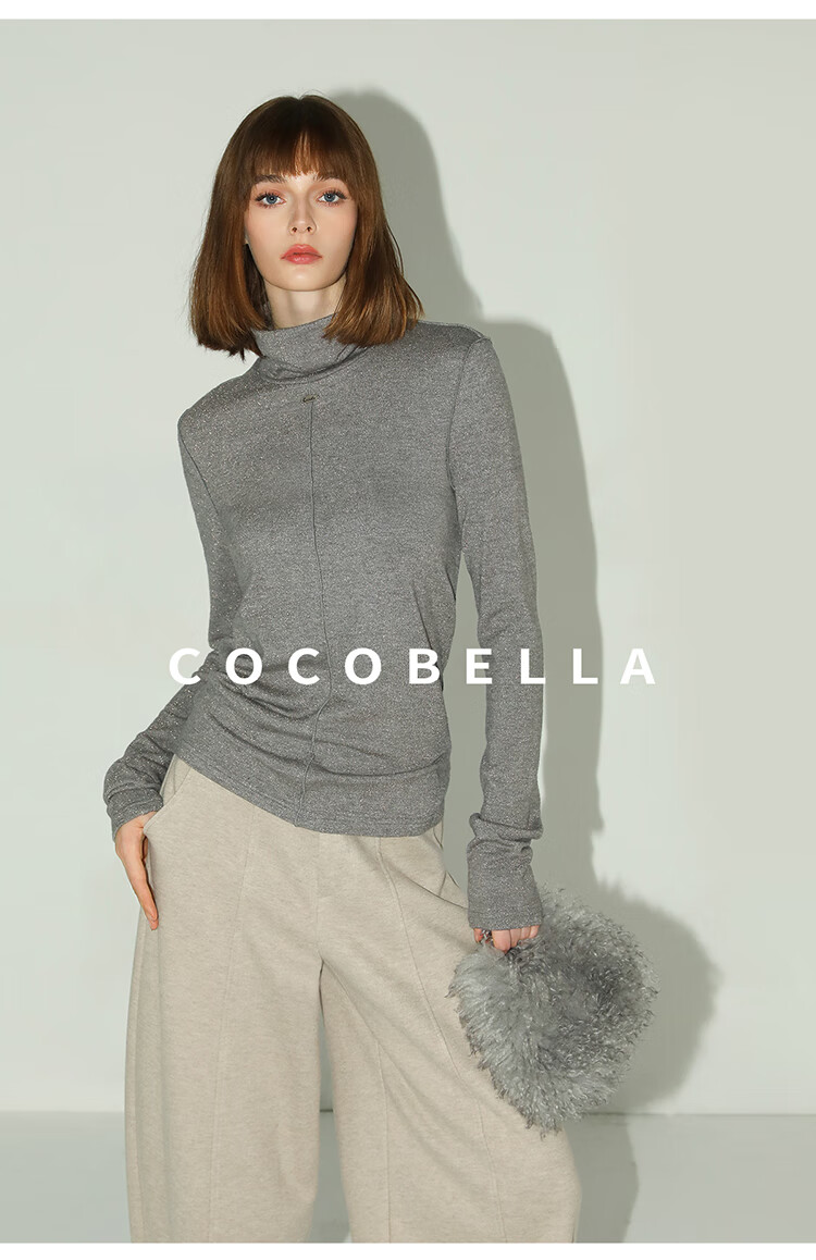 COCOBELLA亮葱细针坑条针织衫立体装饰线高领打底衫TS0032