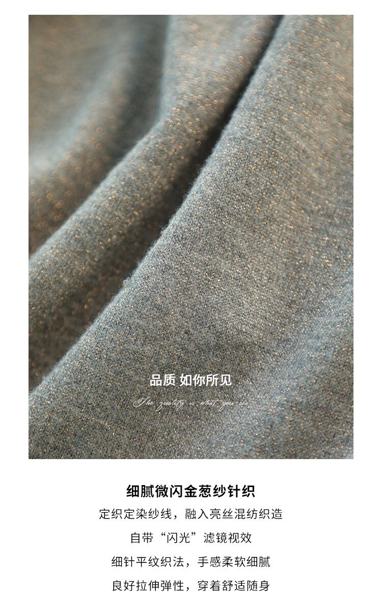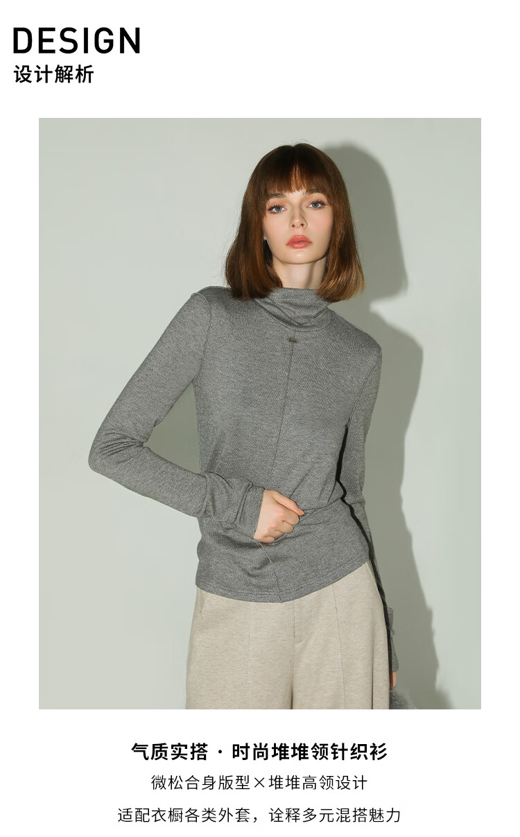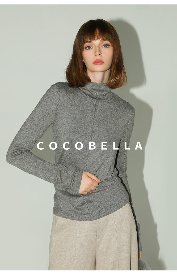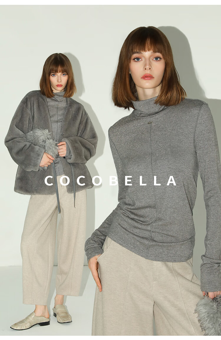 COCOBELLA亮葱细针坑条针织衫立体装饰线高领打底衫TS0032