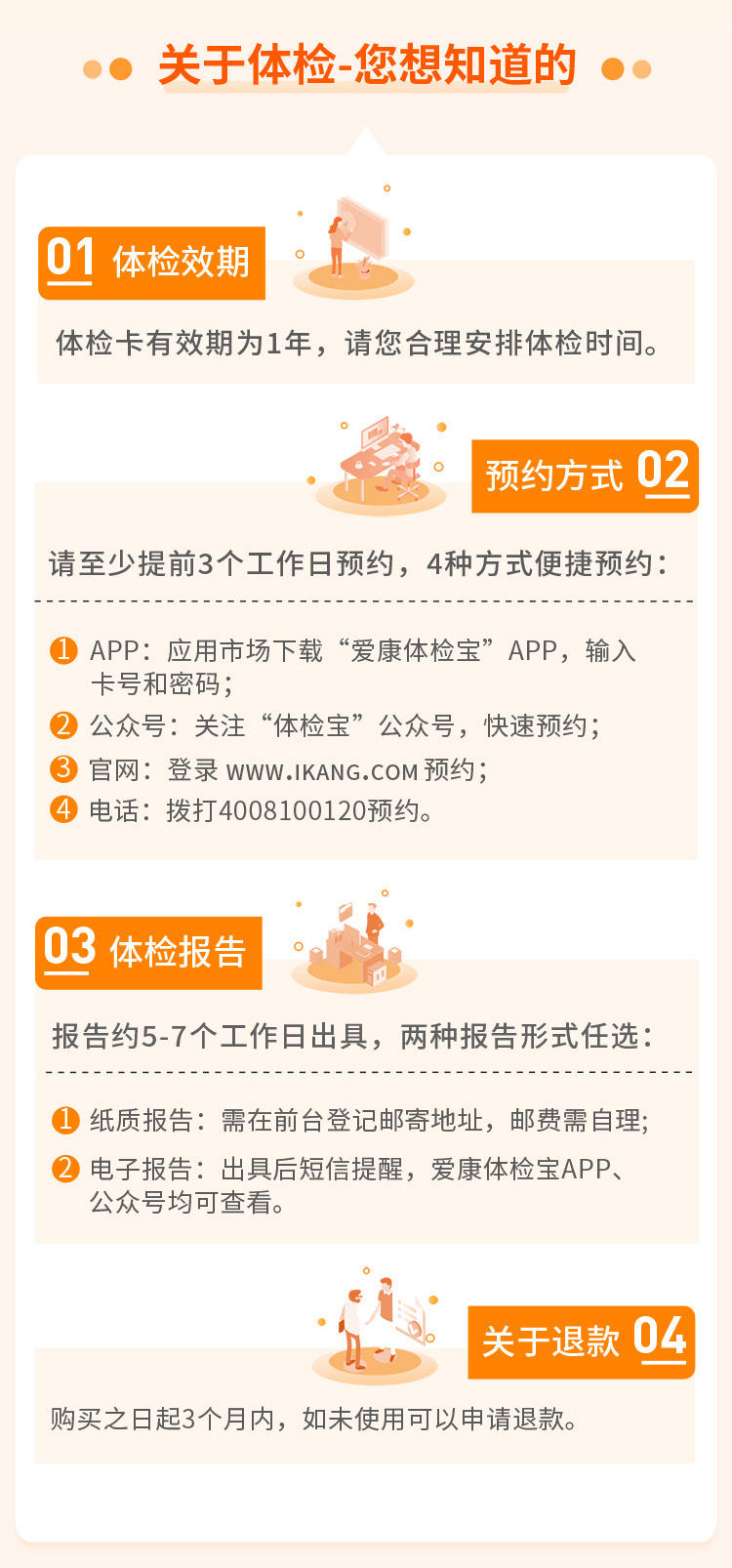 温馨提示:体检卡号和密码系统直接发送,手机有可能会当垃圾短信拦截,如超时没收到短信请及时和客服联系,我们按排补发体检卡号和密码。
