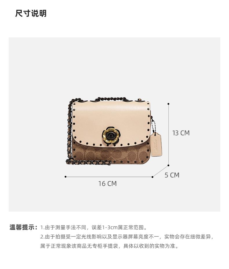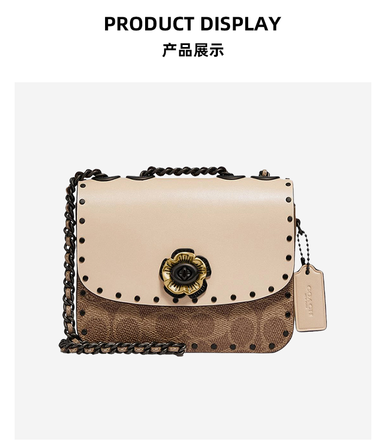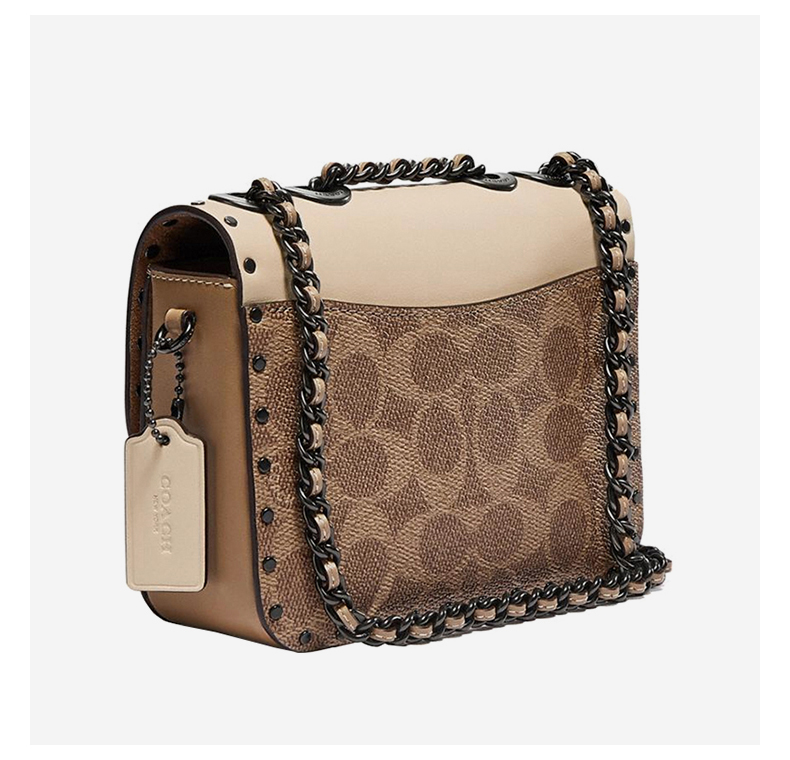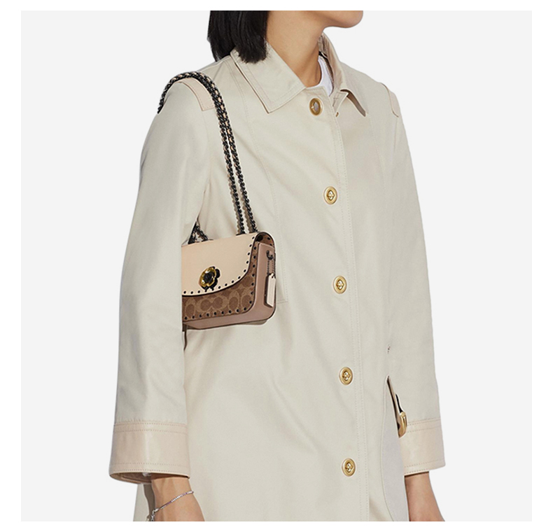 蔻驰COACH奢侈品女士专柜款MADISON系列16号小号单肩包卡其色拼色PVC配皮C2462V5SNE