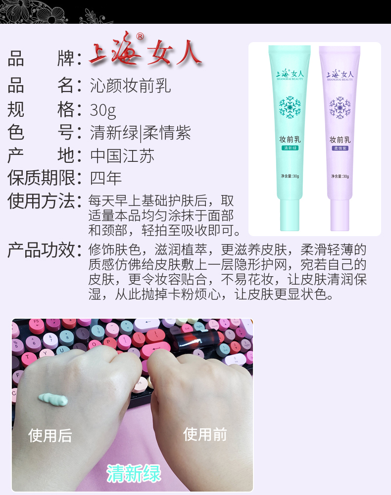 临期特价*26年12月*上海女人沁颜妆前乳30g