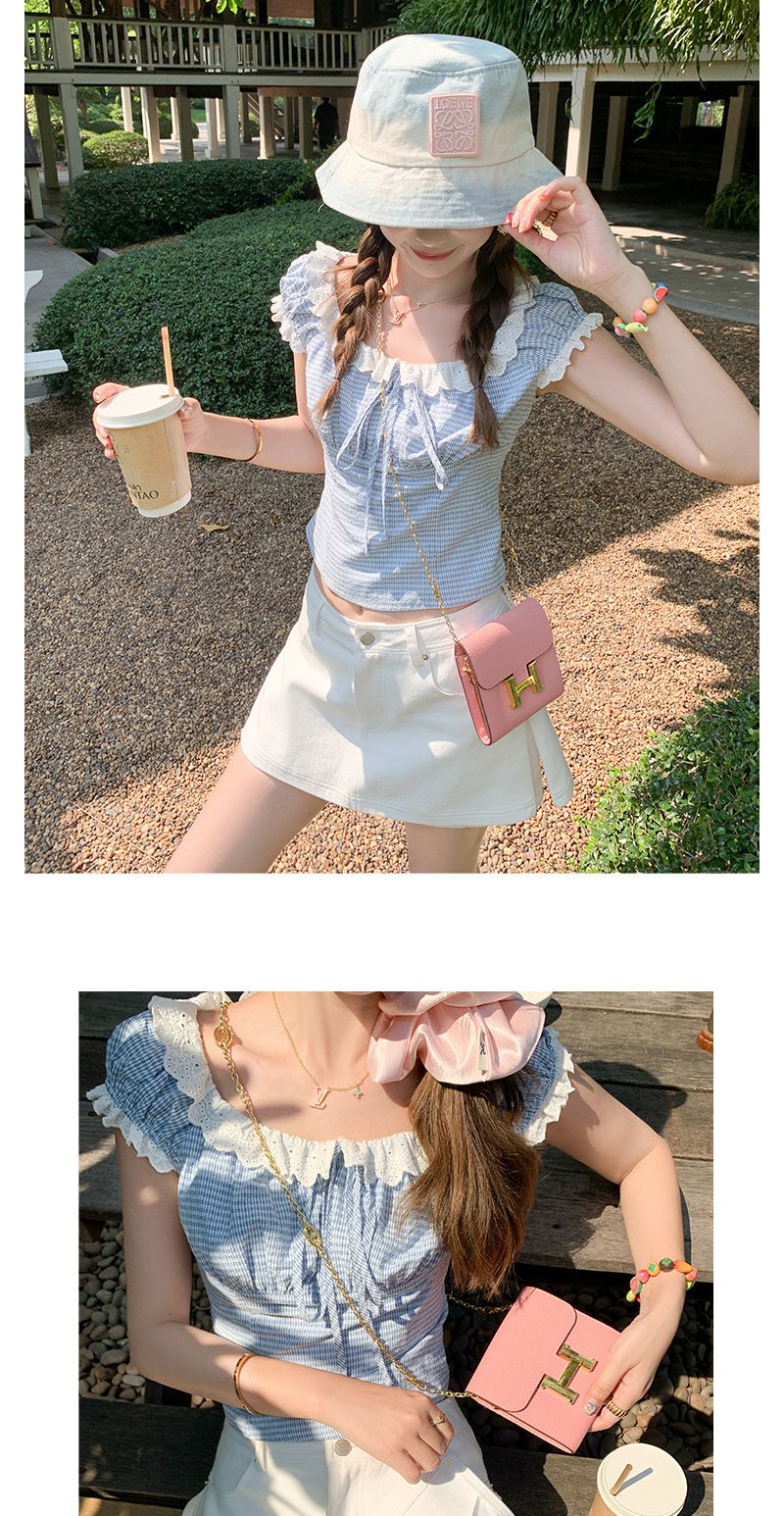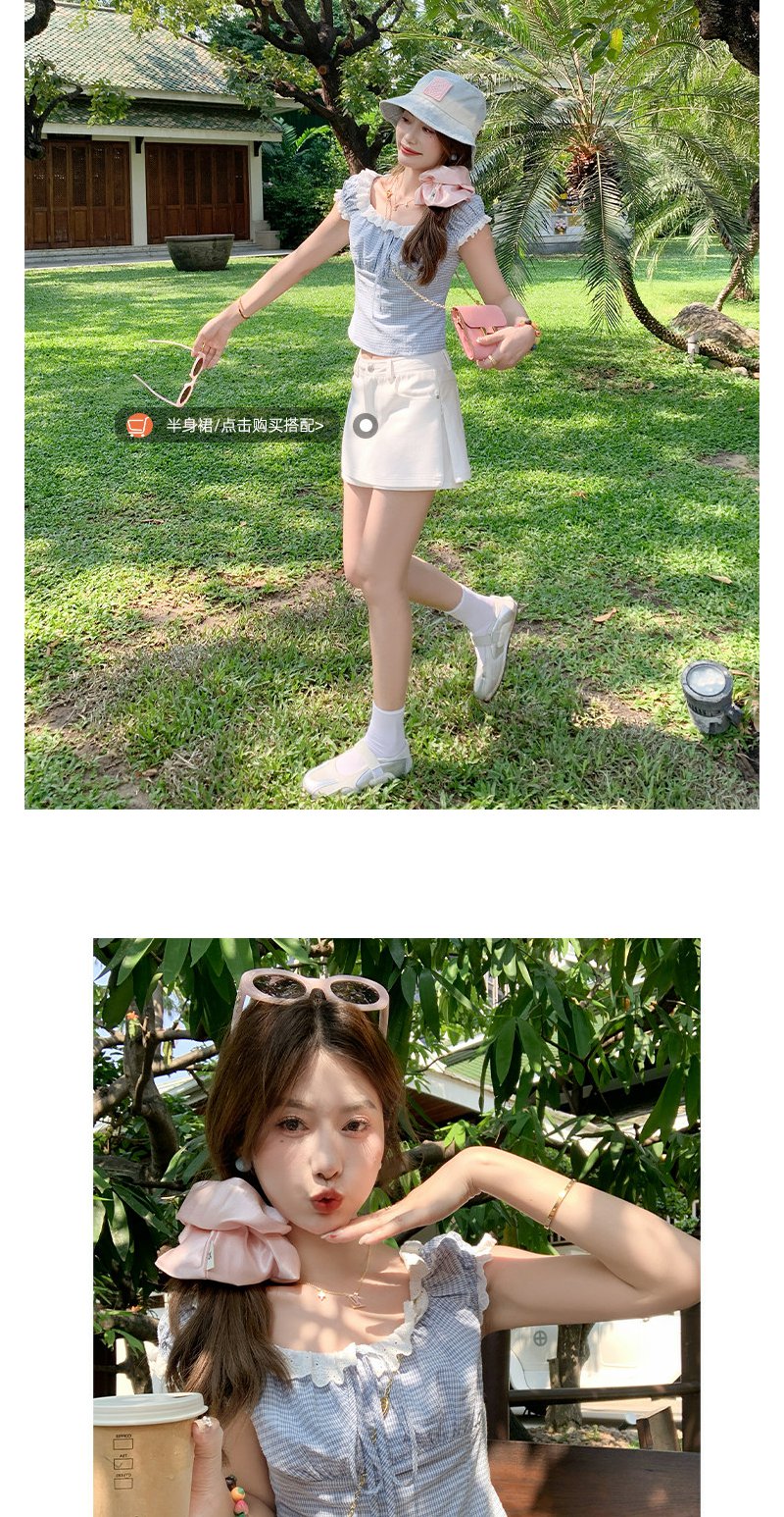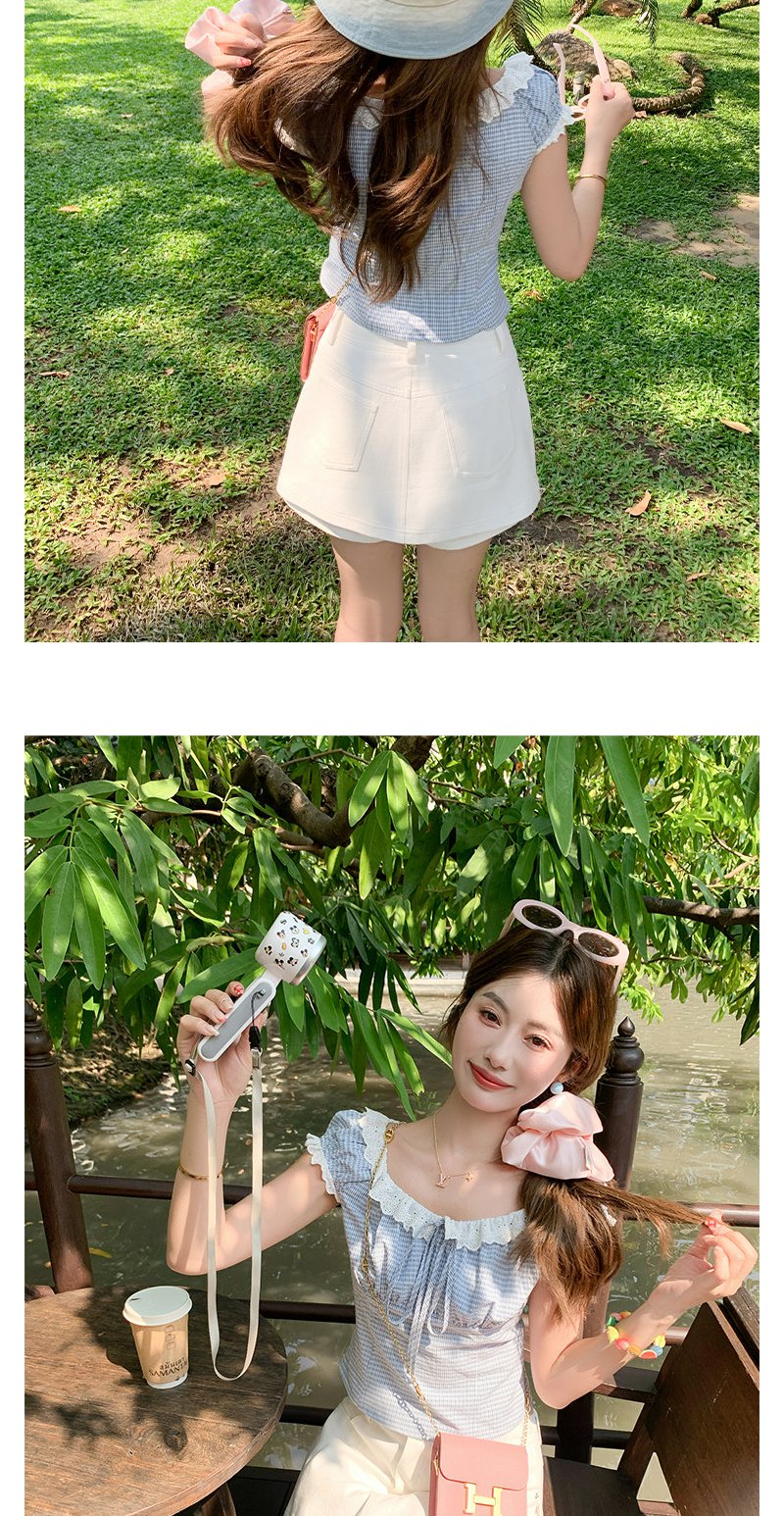 <曾小咸推荐>韩系格子拼接蕾丝泡泡袖衬衫