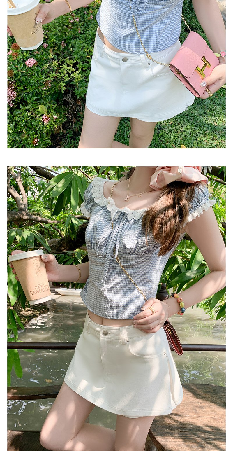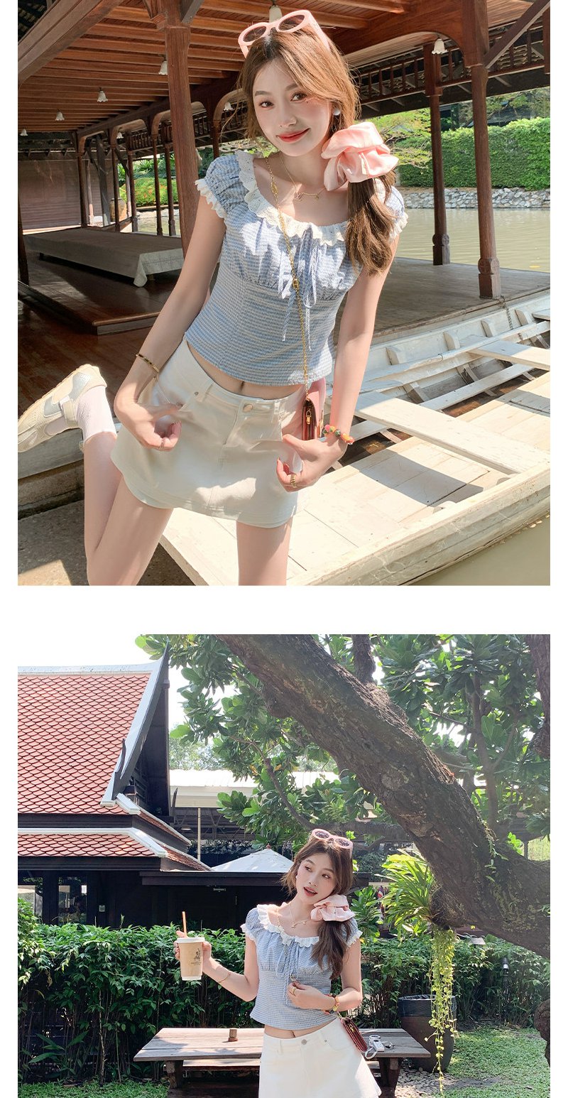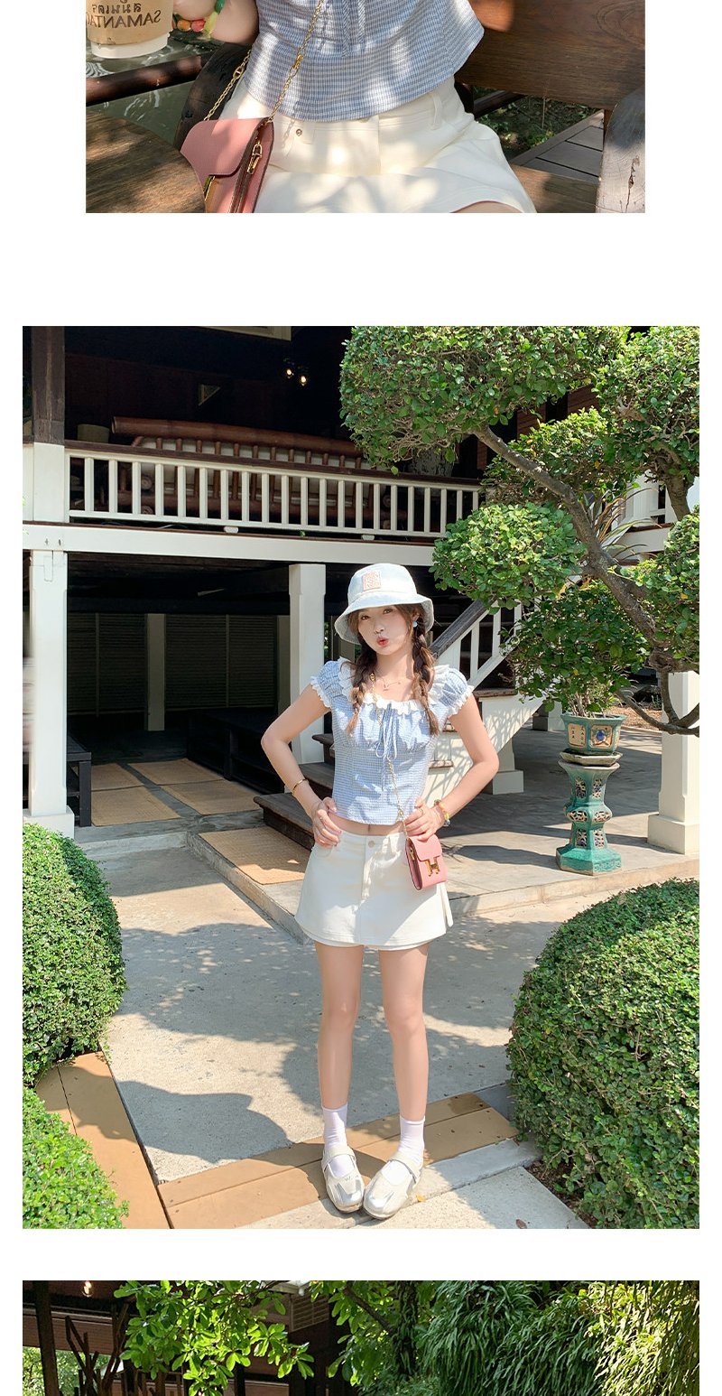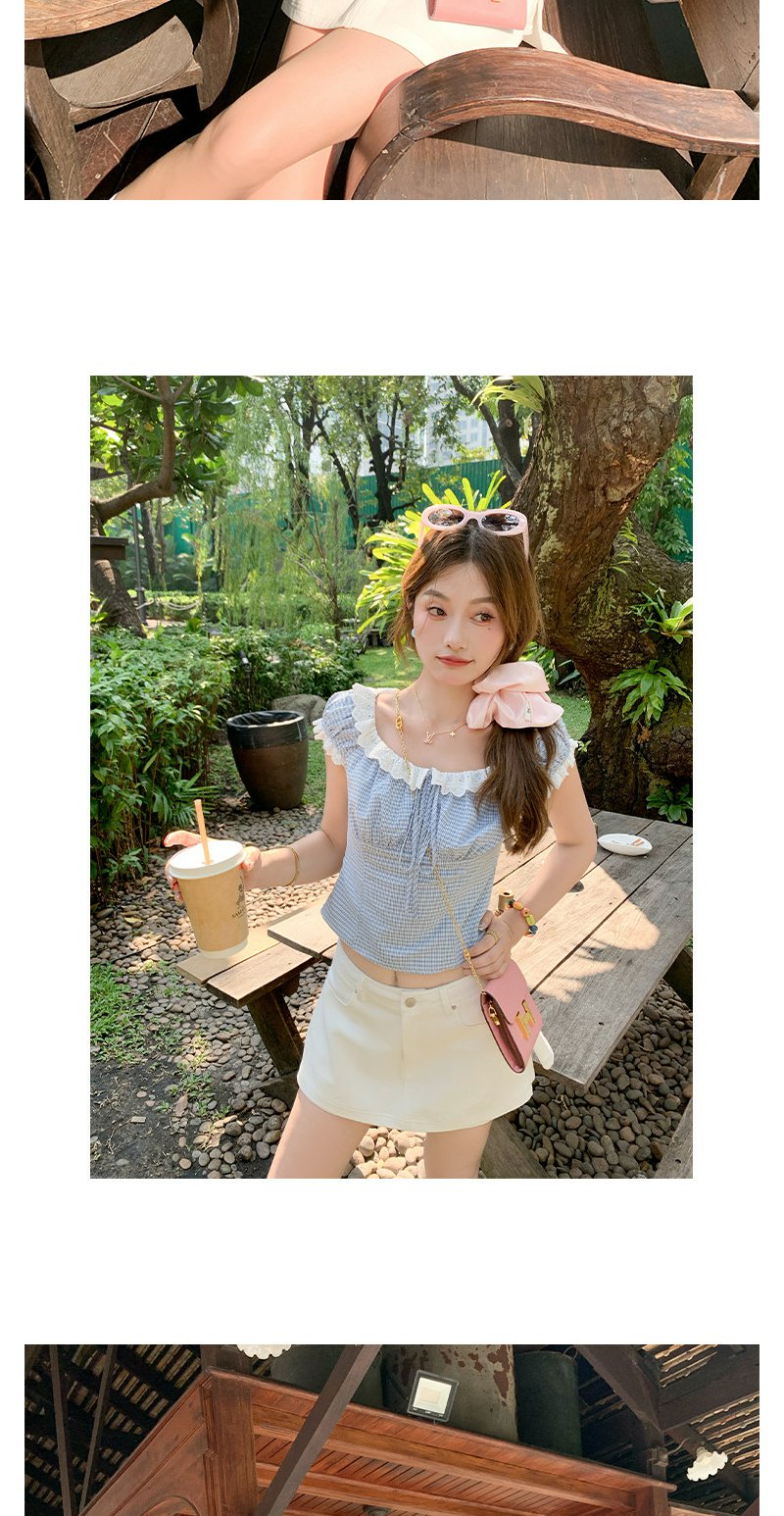 <曾小咸推荐>韩系格子拼接蕾丝泡泡袖衬衫