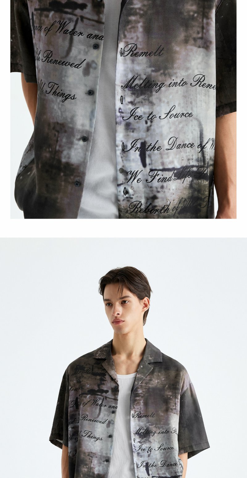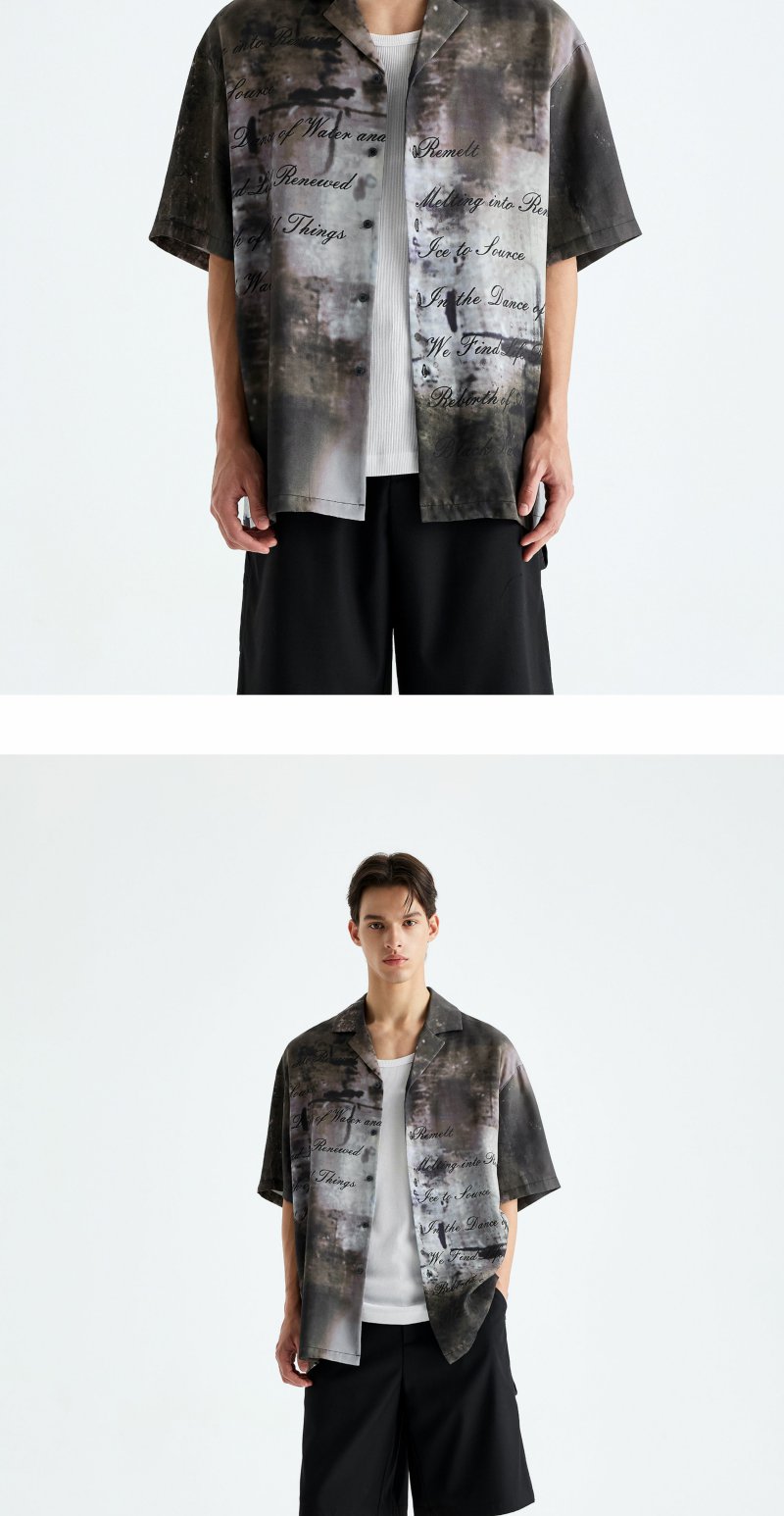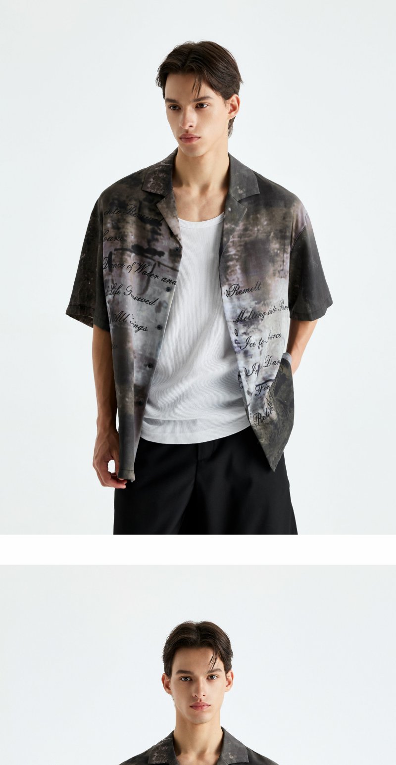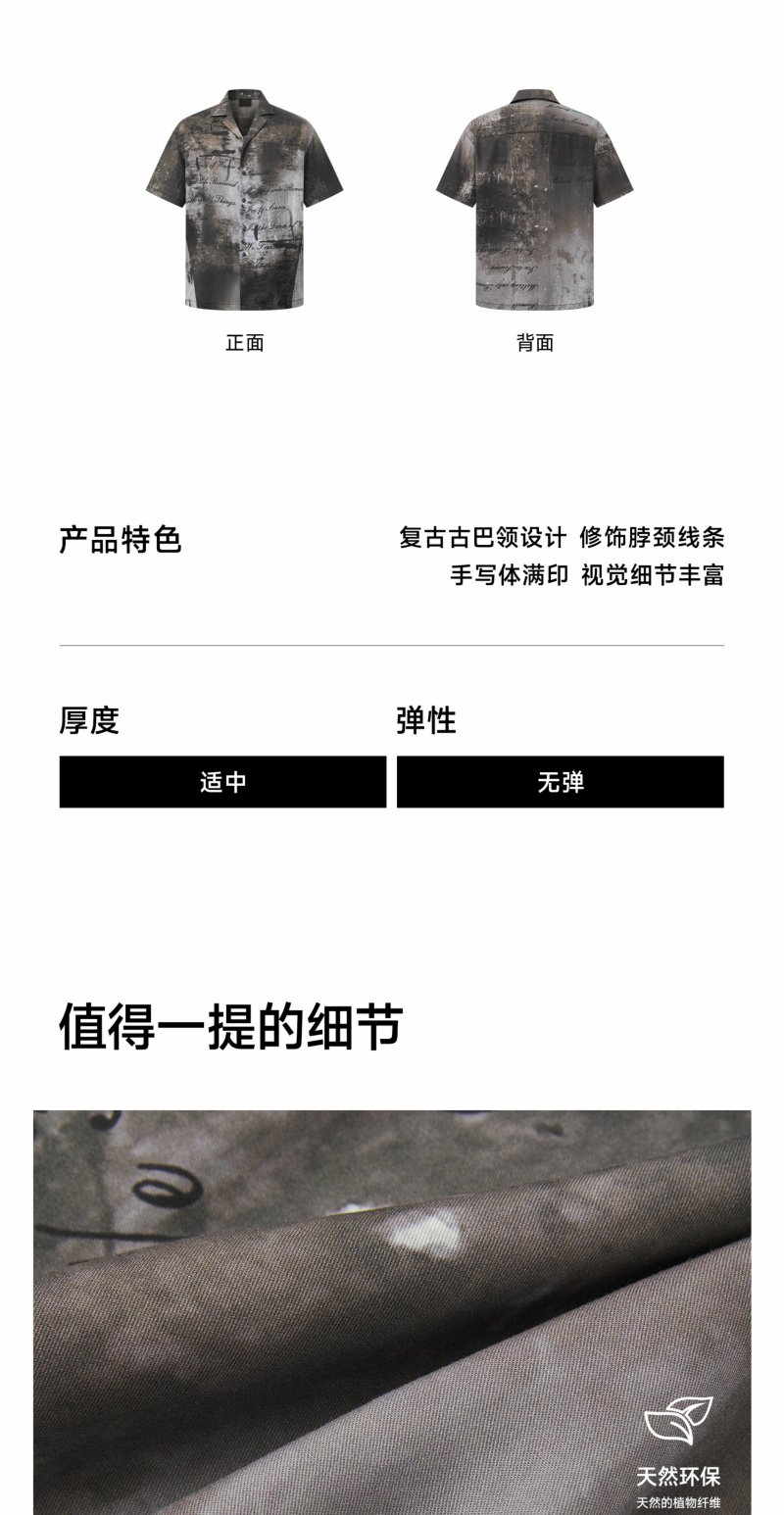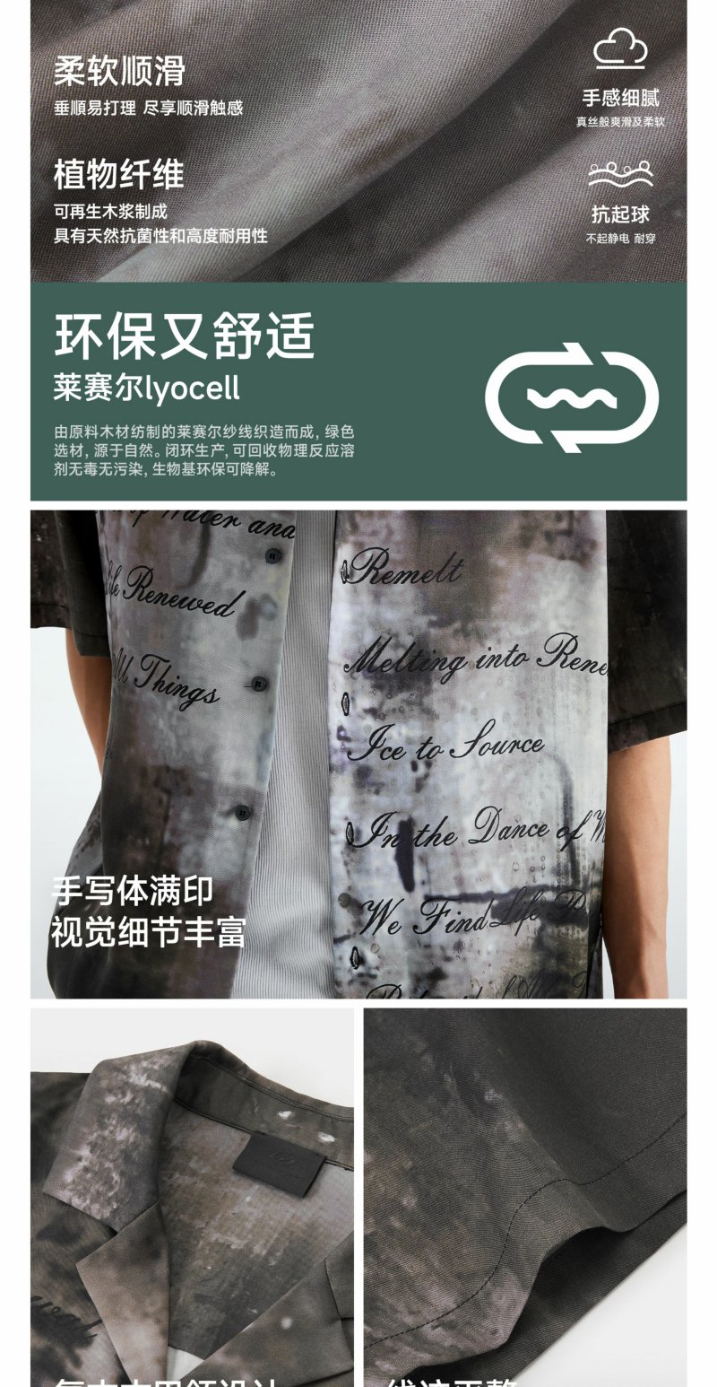 CHINISM赤尘 莱赛尔古巴领短袖衬衫男夏季美式男士宽松休闲衬衣