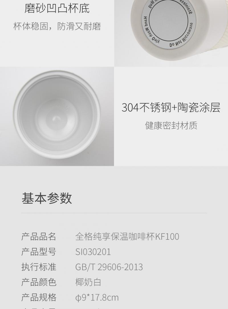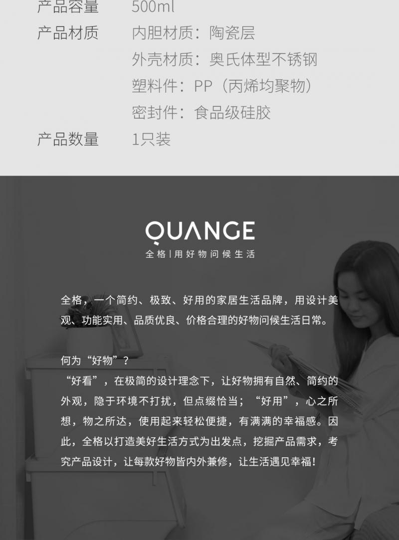 【自营】全格 纯享保温咖啡杯子水杯【容量:500mL】 KF100