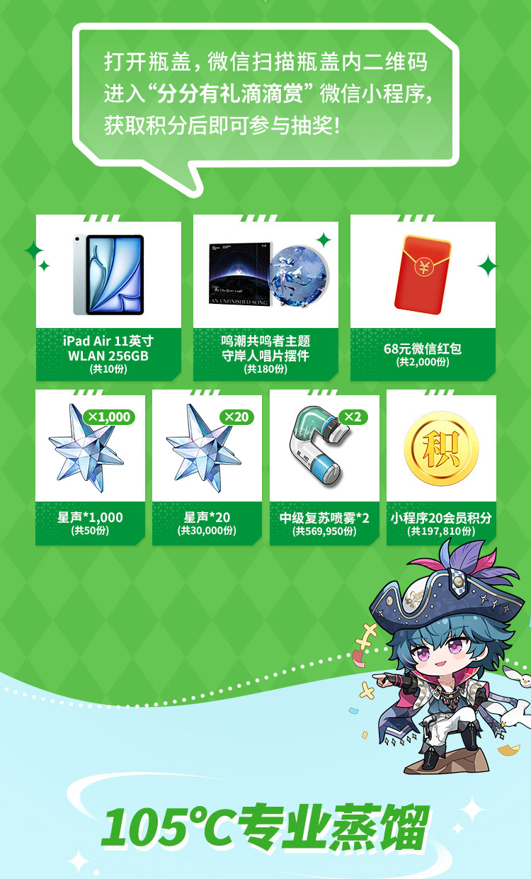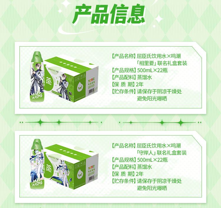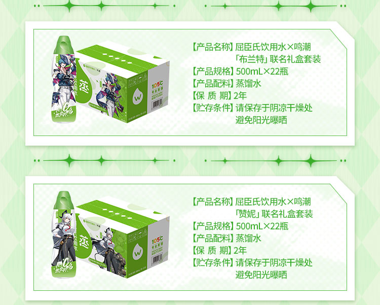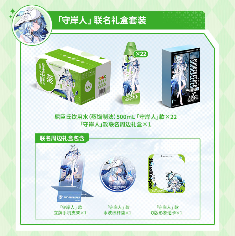 屈臣氏饮用水105℃高温蒸馏制法鸣潮联名500ml*22瓶(赞妮联名款随箱赠周边礼1份)