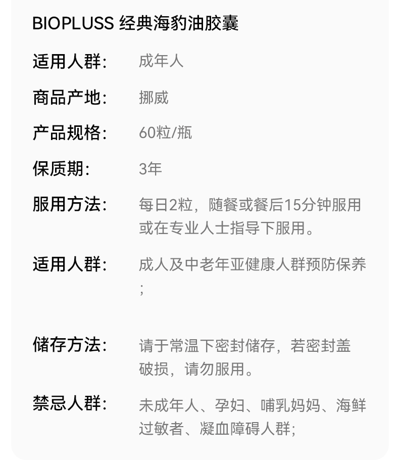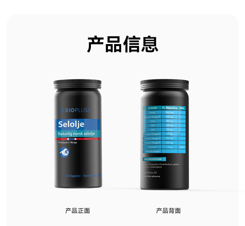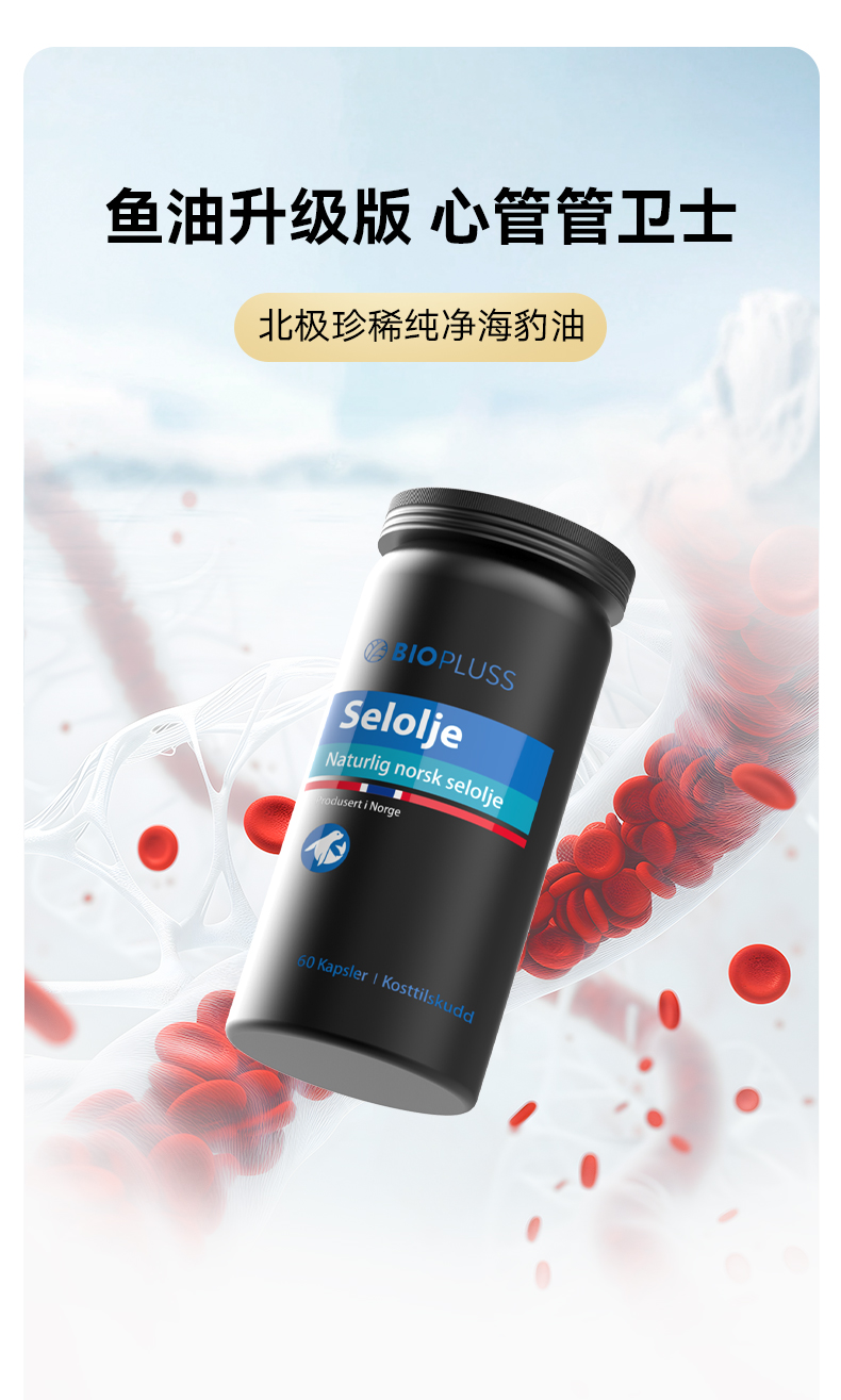 Biopluss挪威进口海豹油挪威非鱼油深海omega3高浓度软胶囊60粒/瓶