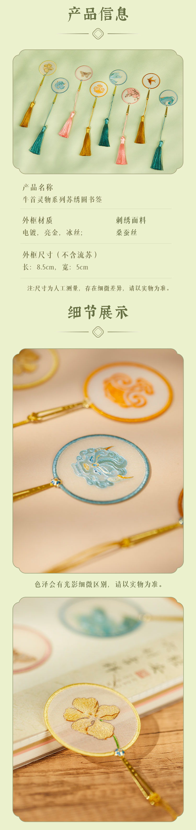 牛首山文创牛首灵物系列苏绣圆书签高档精致创意古典中国风伴手礼