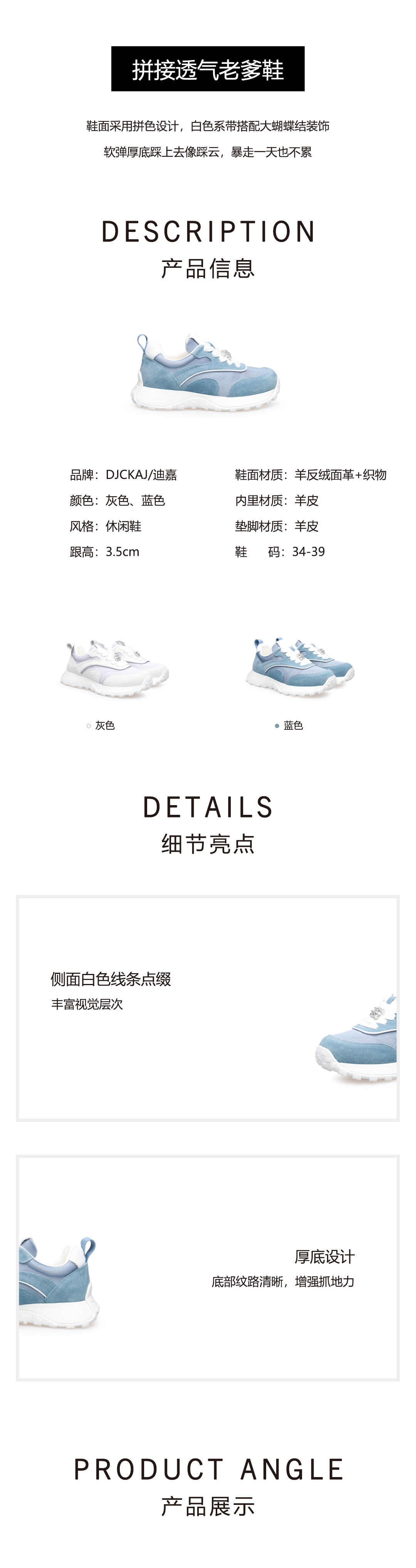 豪麟名鞋迪嘉女鞋时尚休闲鞋羊反绒面革+织物DJJGA61WX004灰色