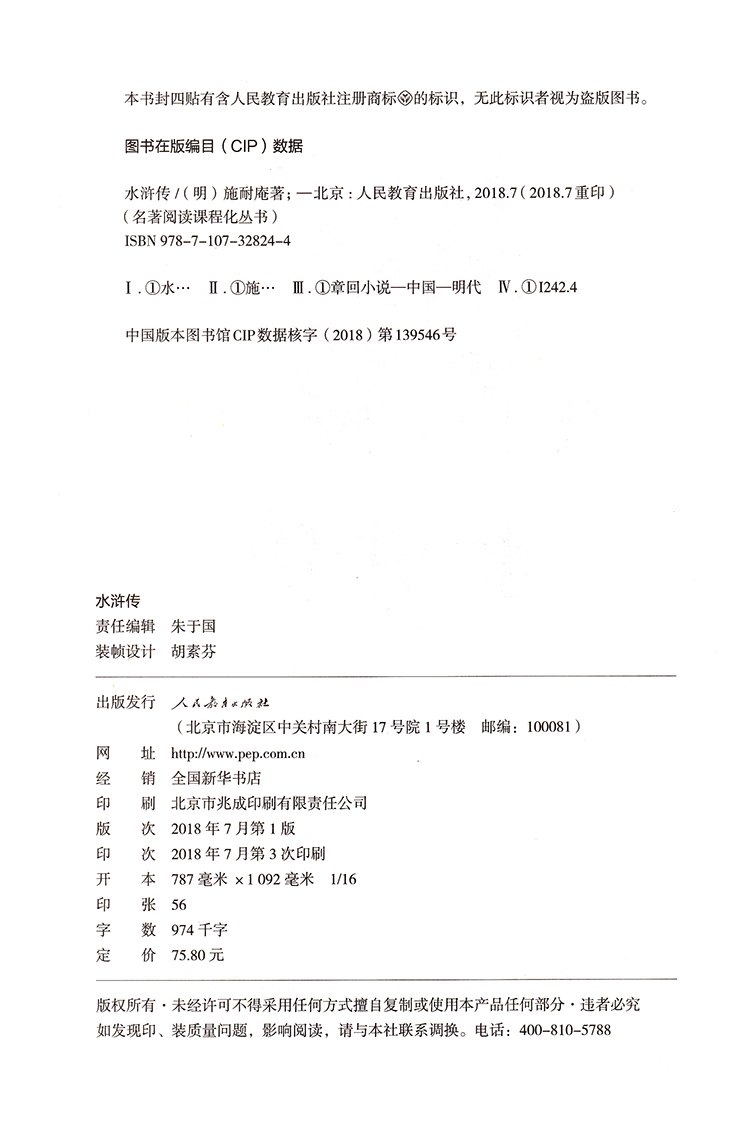 【人教社】水浒传(上下册)九年级上 初中名著阅读课程化丛书 导读版 人民教育出版社