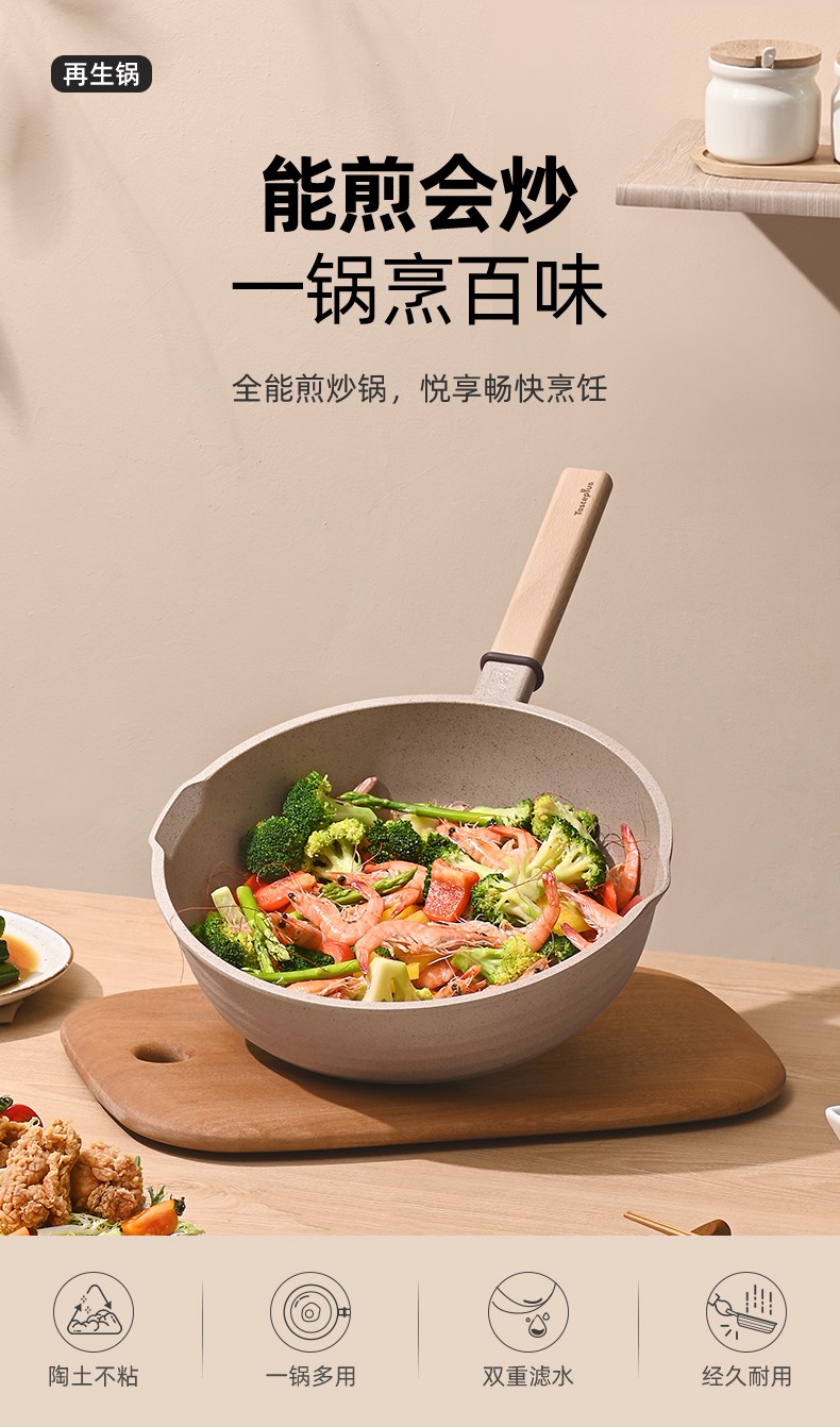 【已下架】悦味 元麦陶土不粘平底锅28cm[福利品]