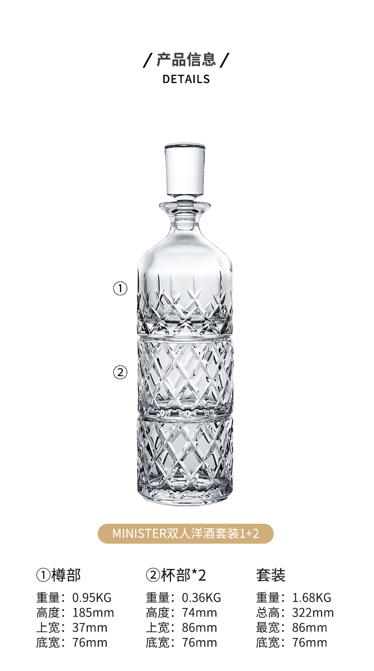 捷克进口/BOHEMIA波西米亚进口水晶威士忌套装(1樽2杯)-YHD
