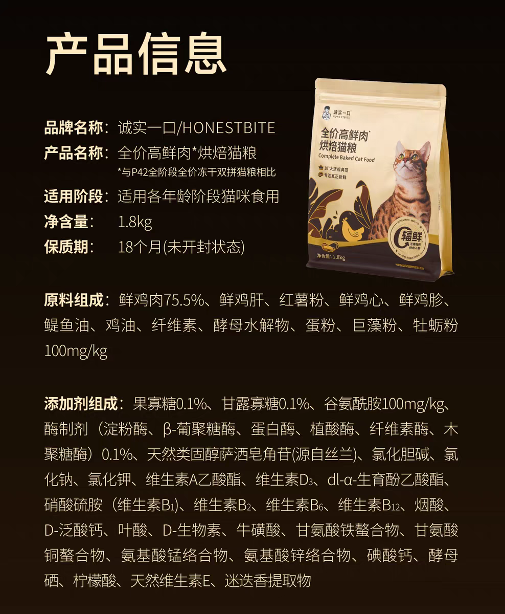 诚实一口 黑金 烘焙猫粮(升级款)1.8kg/包