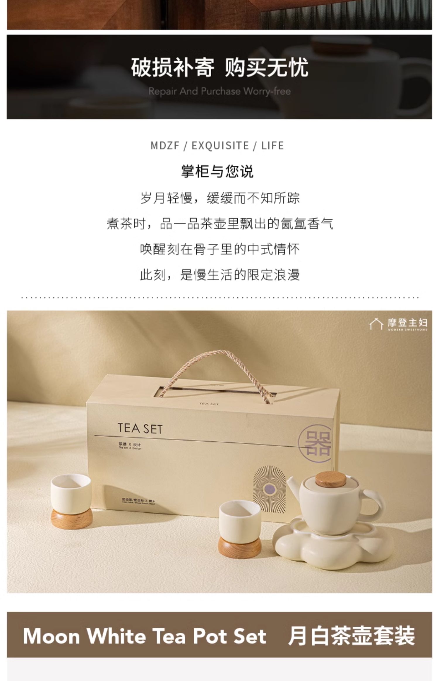 B-BFT2653 沐月煮茶四杯(沐月杯 榉木杯座)礼盒套装