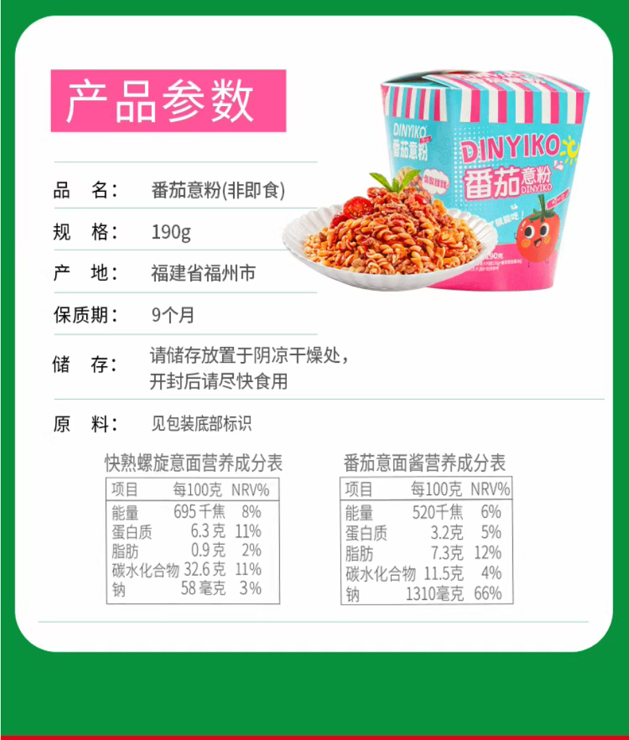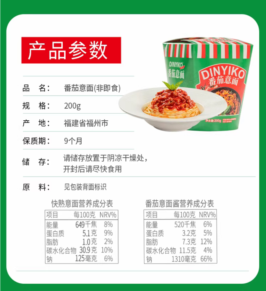 【品名】叮一口番茄意面番茄酱肉酱味道随机3盒 200克每盒