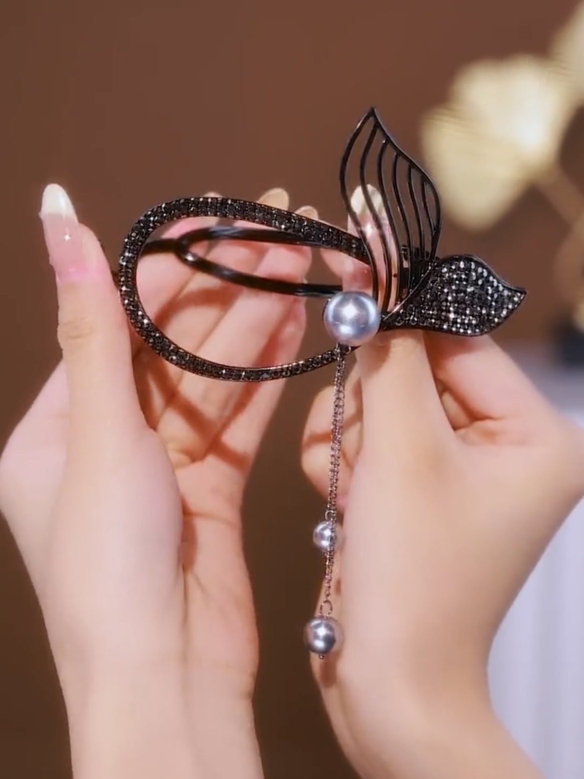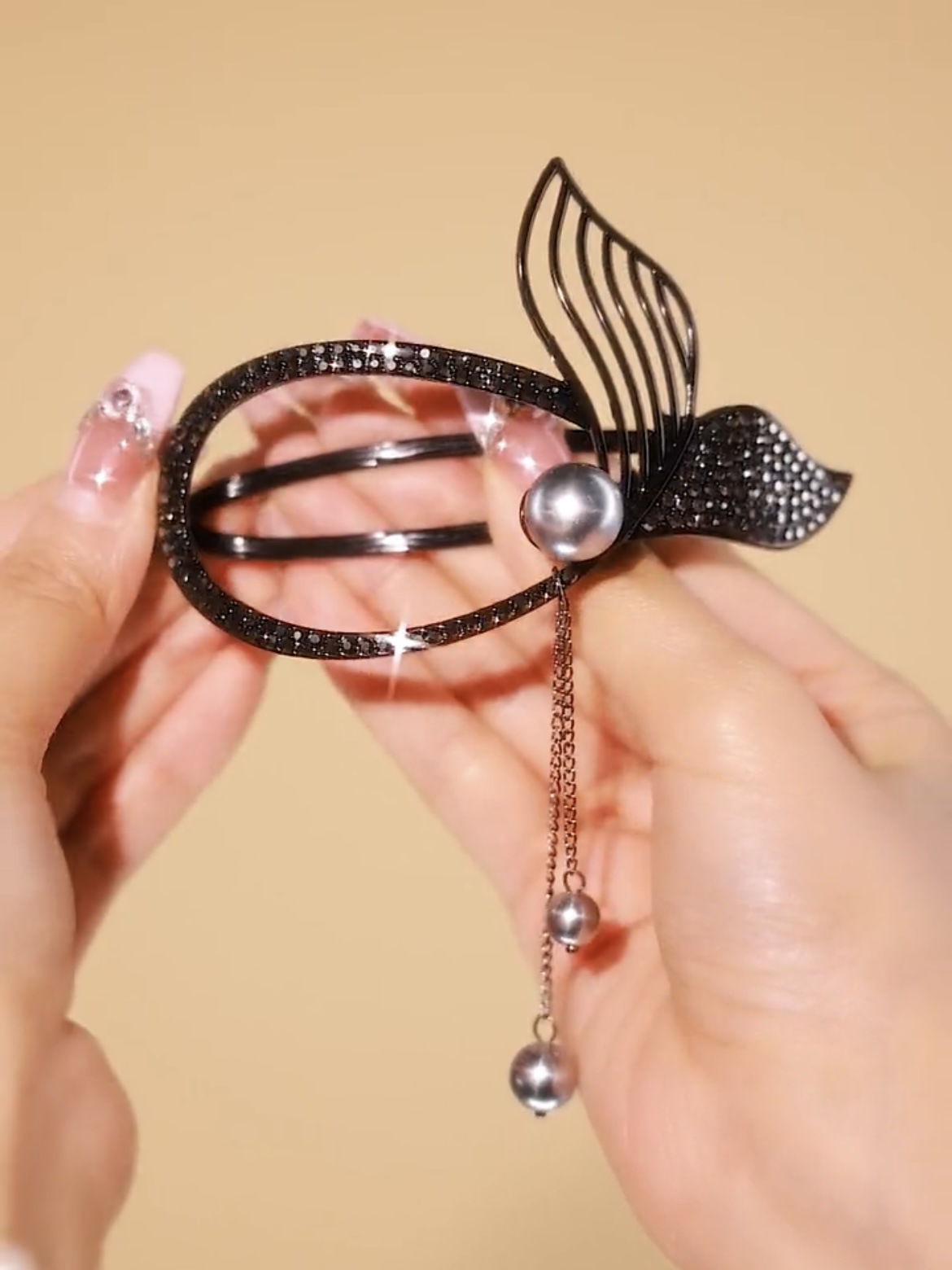 「9.9元包邮!两色可选」珍珠鱼尾流苏扭扭发夹 女高级感抓夹夏季后脑勺气质一字夹青蛙扣时尚饰品
