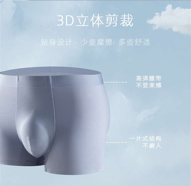 运动速干男士内裤3条装 男士四角裤7A抑菌 轻薄面料 整身无痕设计